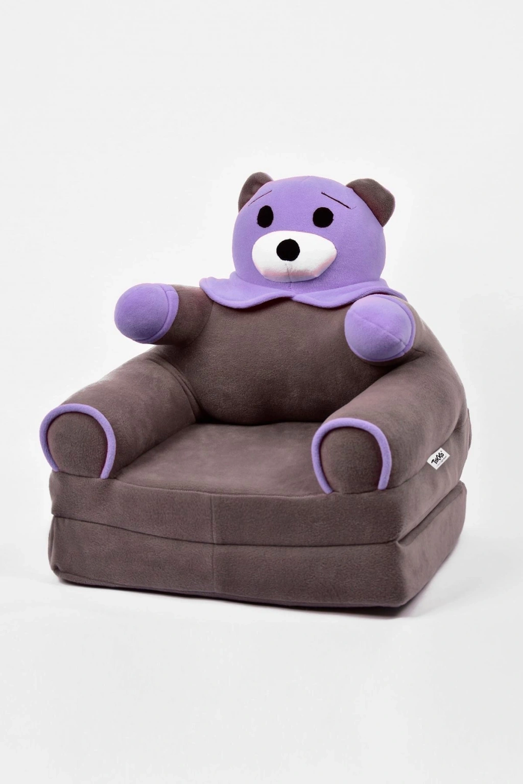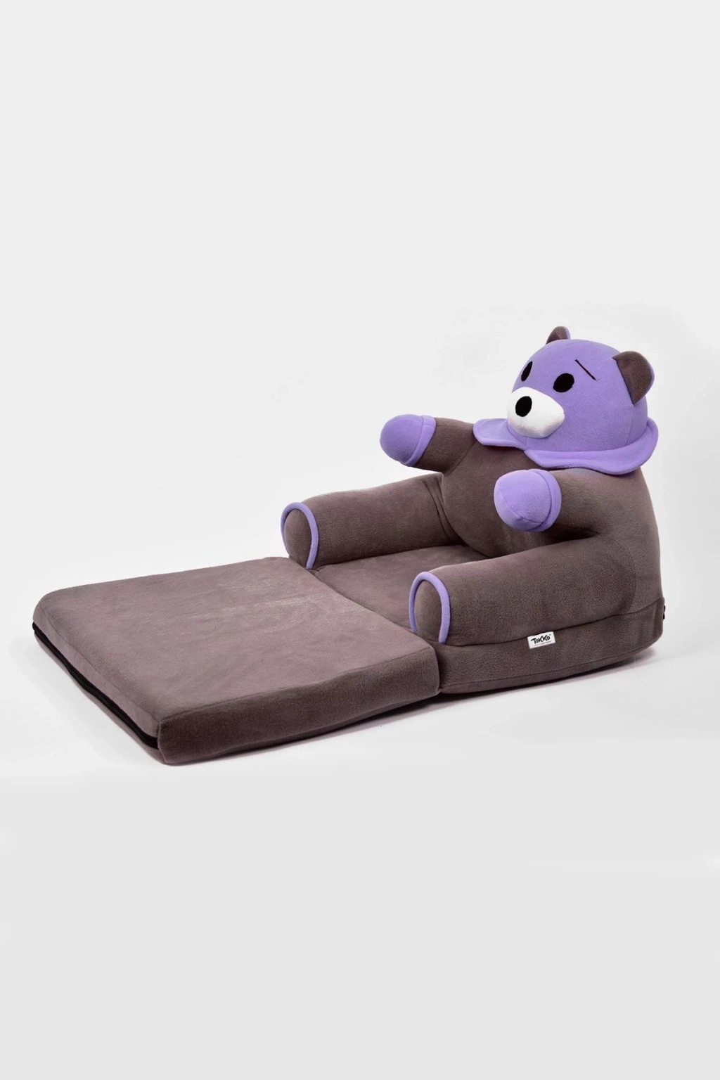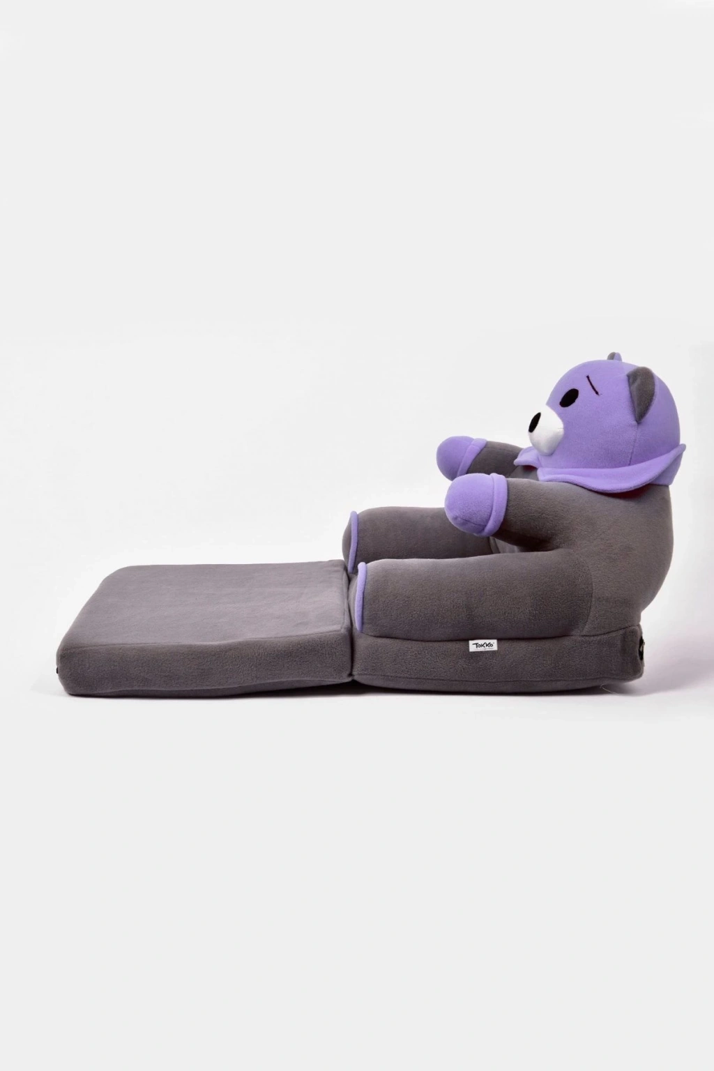 Anti Bakteriyel Portatif Katlanabilir Sünger Çocuk Koltuğu - Panda, Ayıcık Koltuk Gri Lila