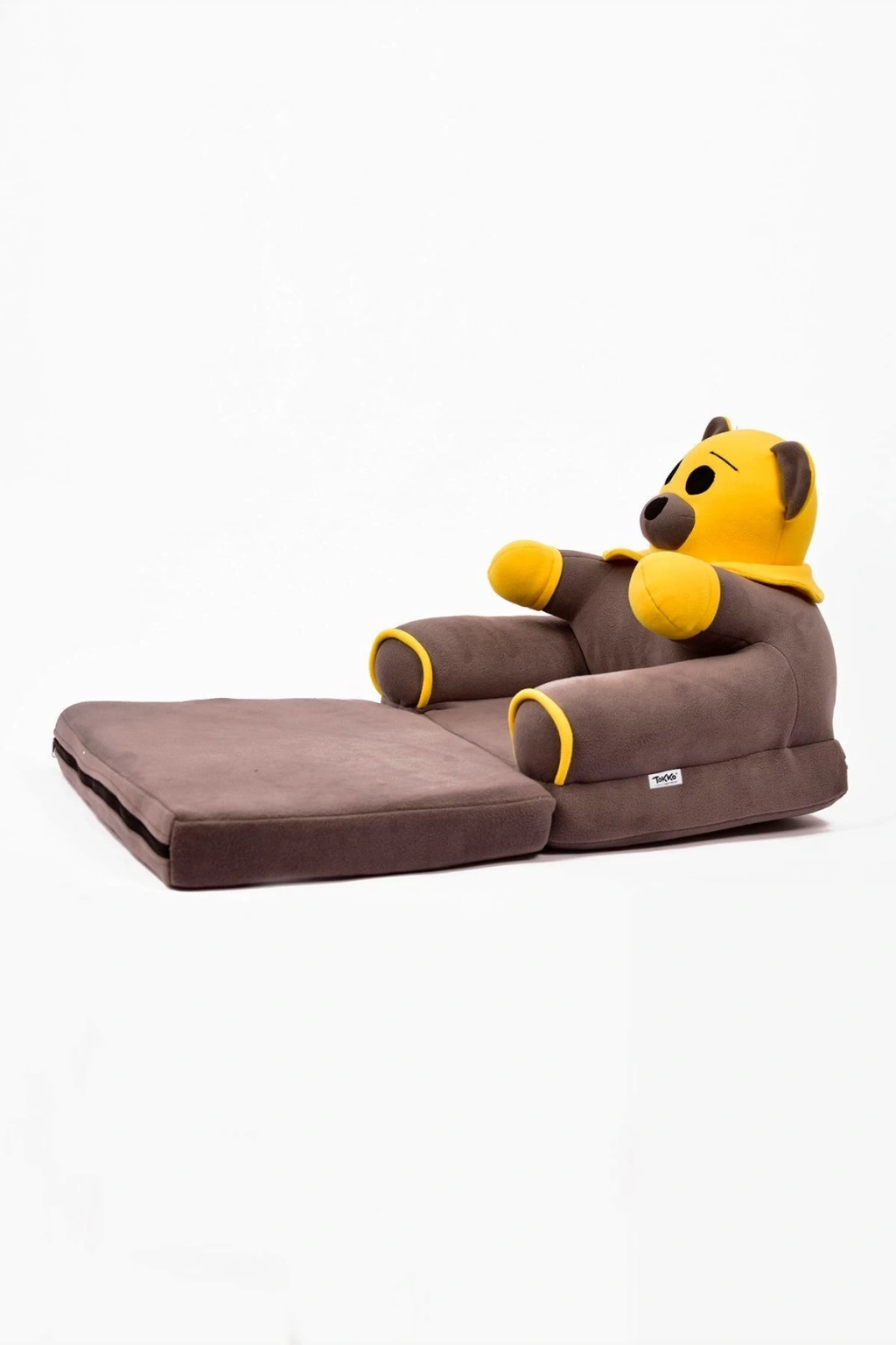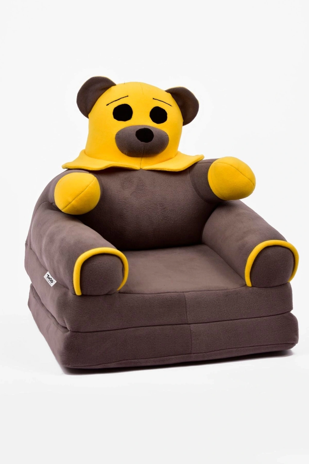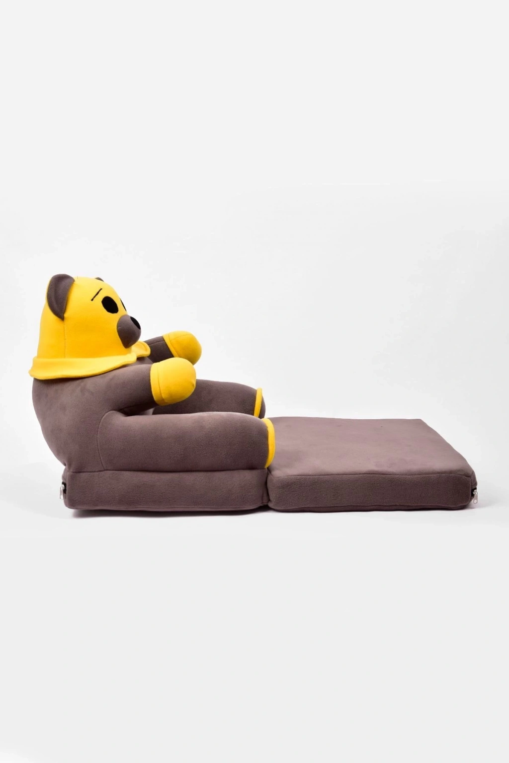 Anti Bakteriyel Portatif Katlanabilir Sünger Çocuk Koltuğu - Panda, Ayıcık Koltuk Gri Sarı