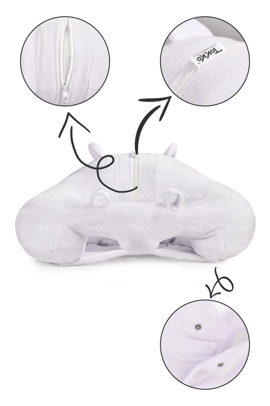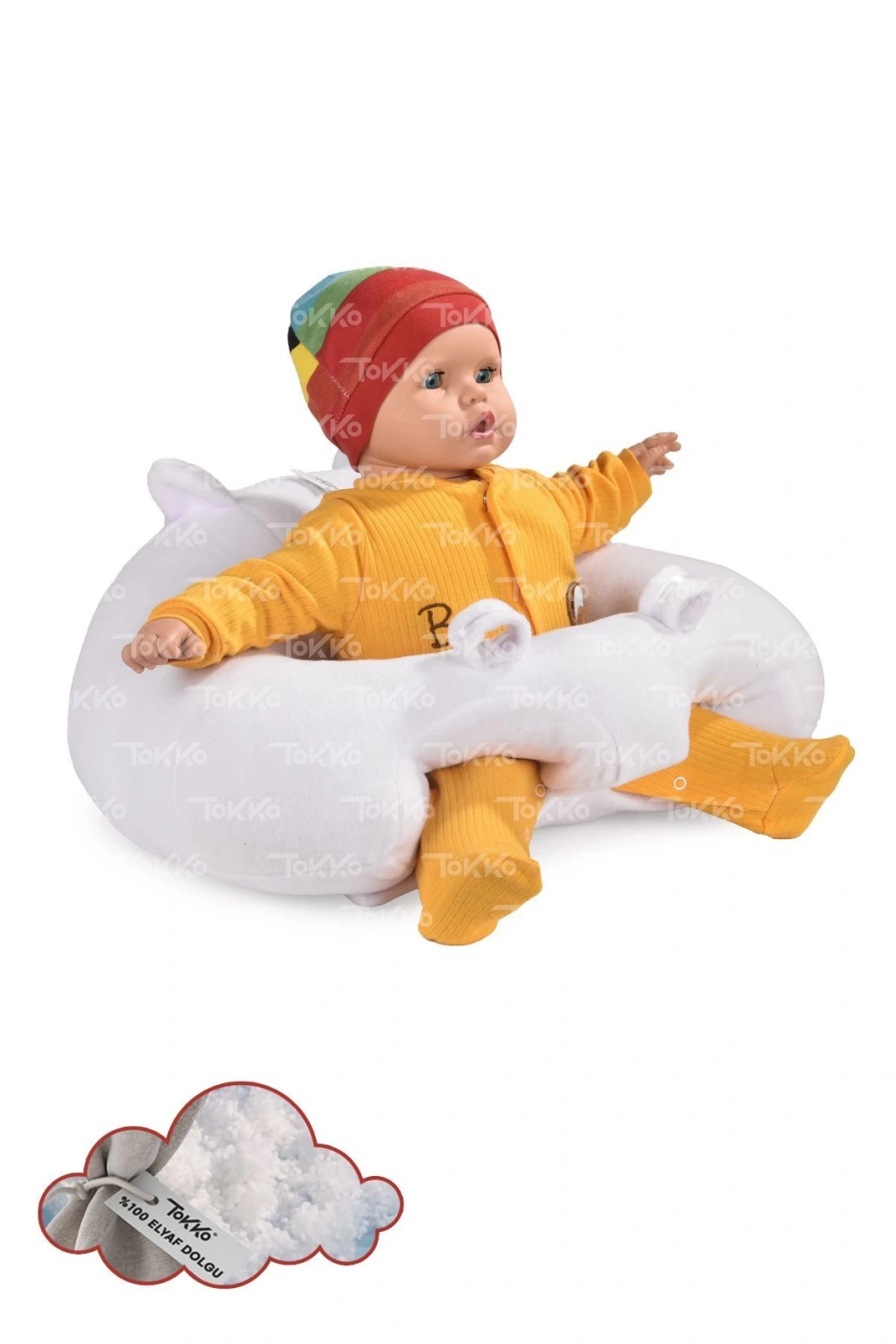 Elyaf Dolgu Bebek Oturma Destek Minderi - Devrilmez Bebek Koltuğu - Büyük Bebek Oturağı Beyaz