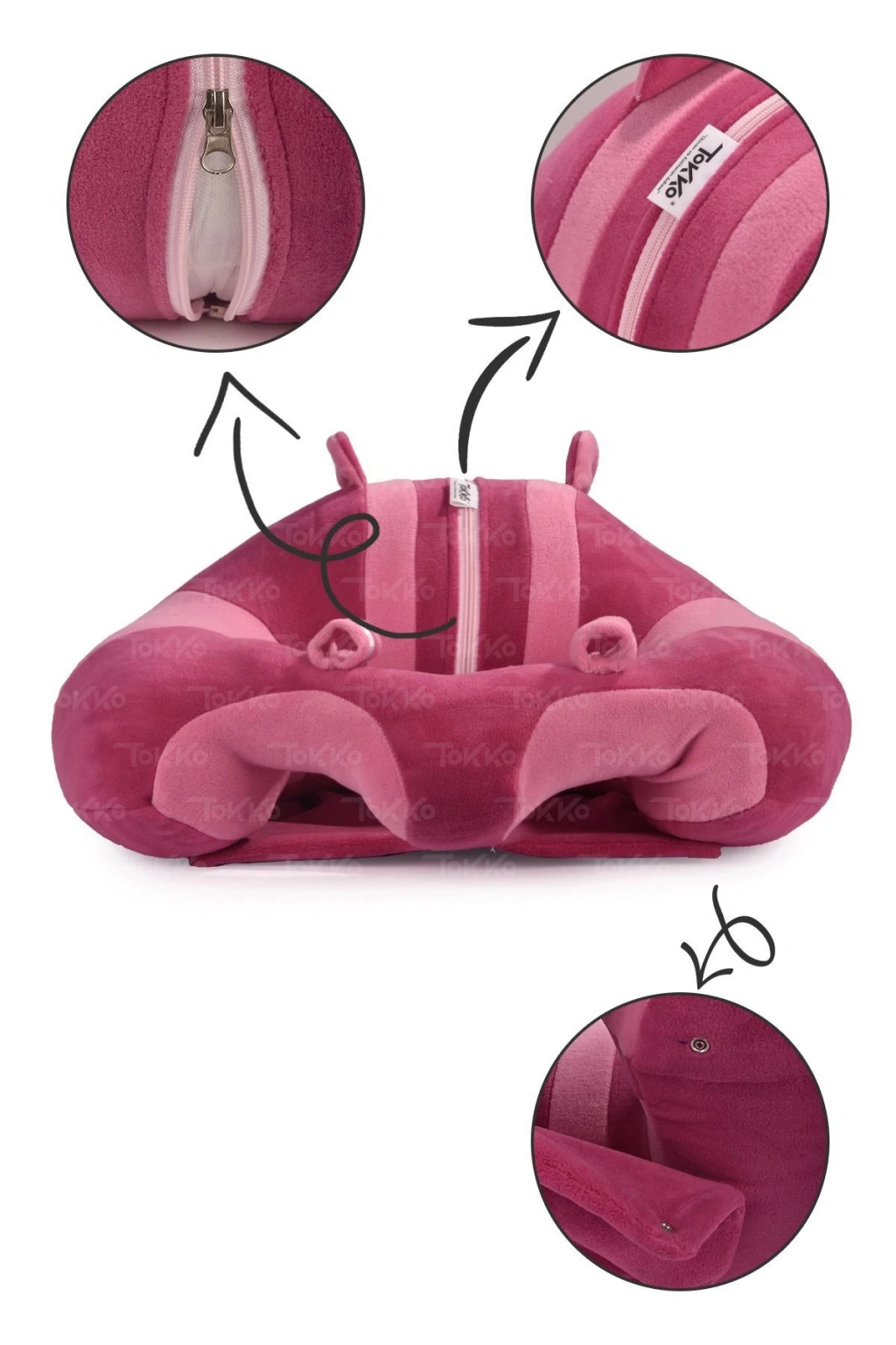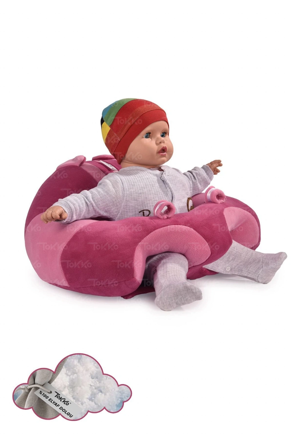 Elyaf Dolgu Bebek Oturma Destek Minderi - Devrilmez Bebek Koltuğu - Büyük Bebek Oturağı Fuşya Beyaz