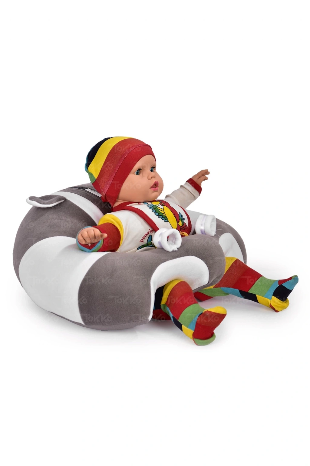 Elyaf Dolgu Bebek Oturma Destek Minderi - Devrilmez Bebek Koltuğu - Büyük Bebek Oturağı Gri Beyaz