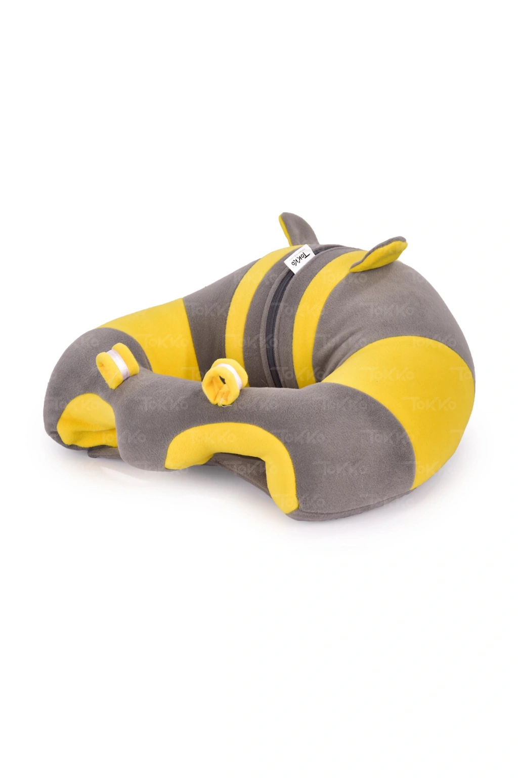 Elyaf Dolgu Bebek Oturma Destek Minderi - Devrilmez Bebek Koltuğu - Büyük Bebek Oturağı Sarı Siyah