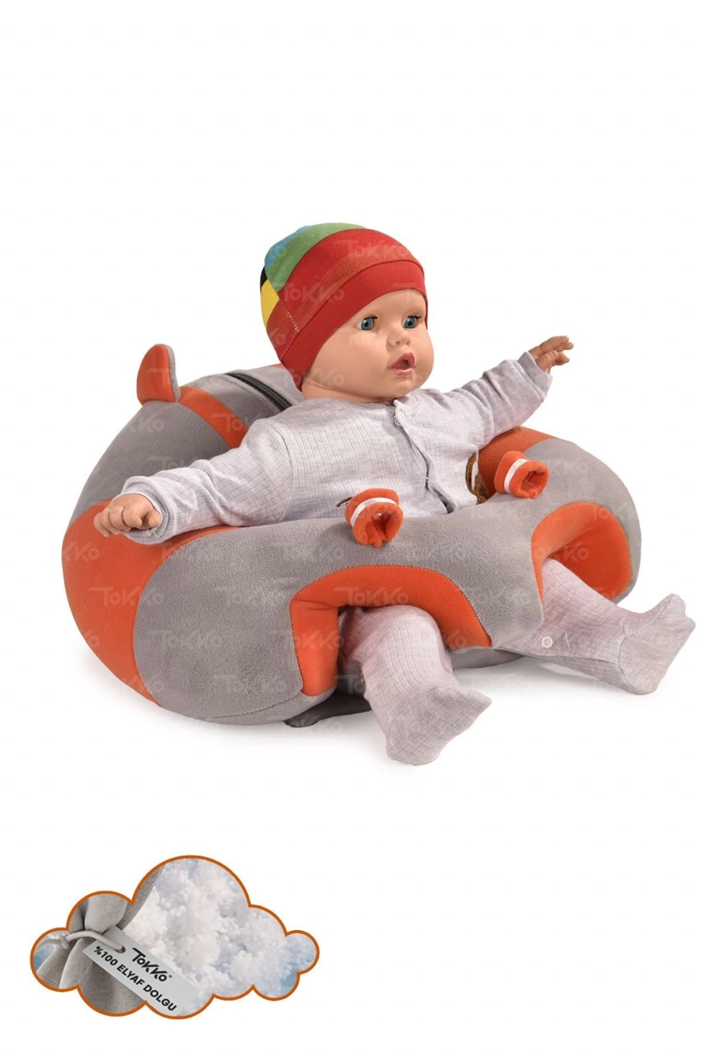 Elyaf Dolgu Bebek Oturma Destek Minderi - Devrilmez Bebek Koltuğu - Büyük Bebek Oturağı Gri Turuncu
