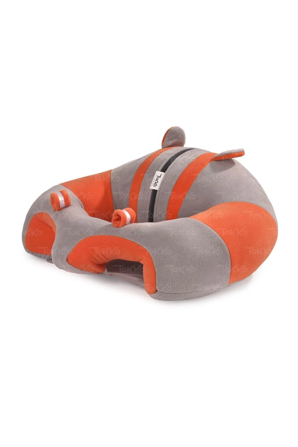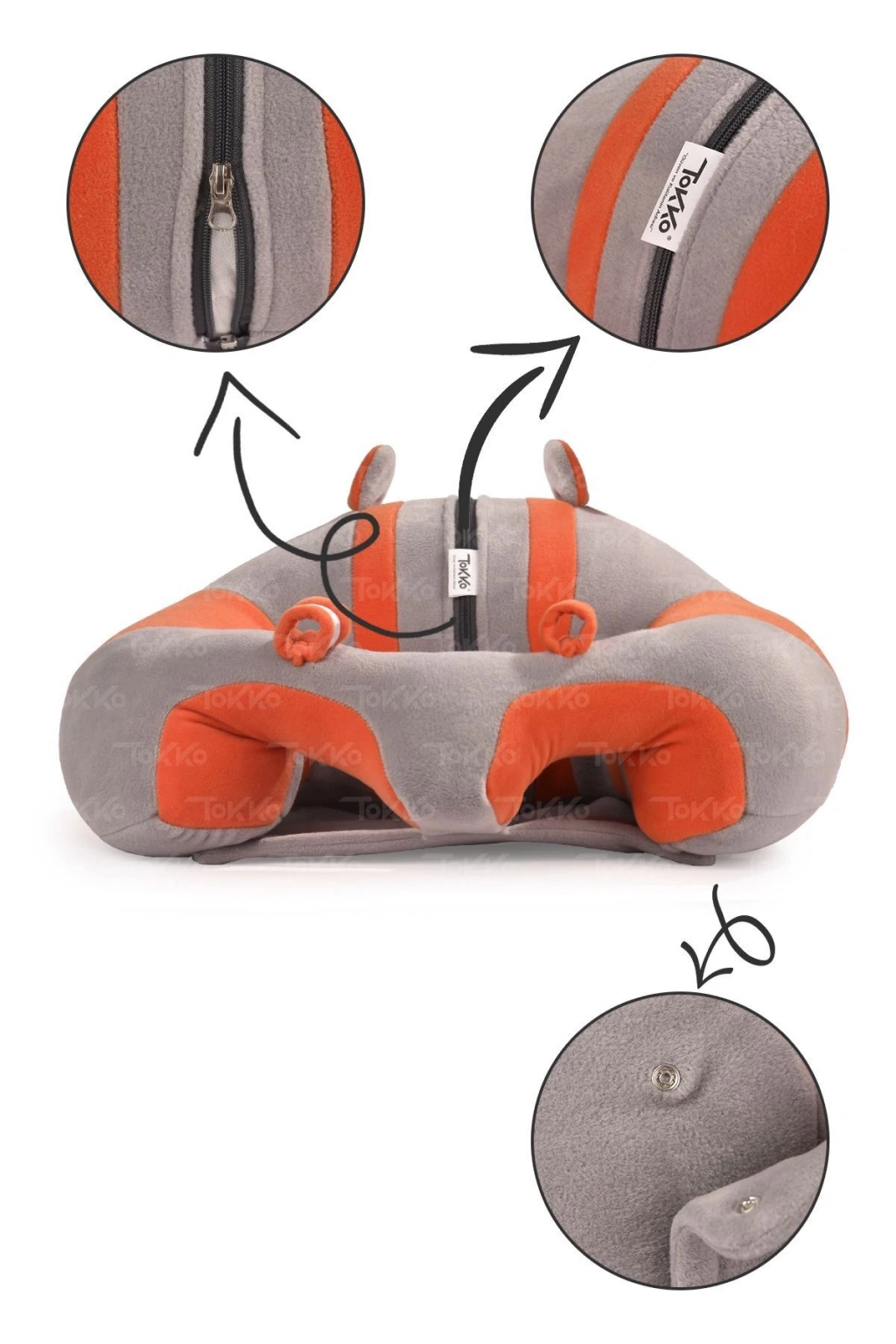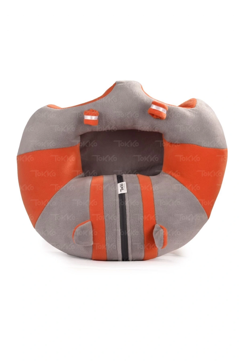 Elyaf Dolgu Bebek Oturma Destek Minderi - Devrilmez Bebek Koltuğu - Büyük Bebek Oturağı Turuncu Gri