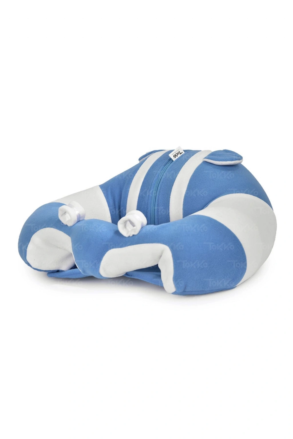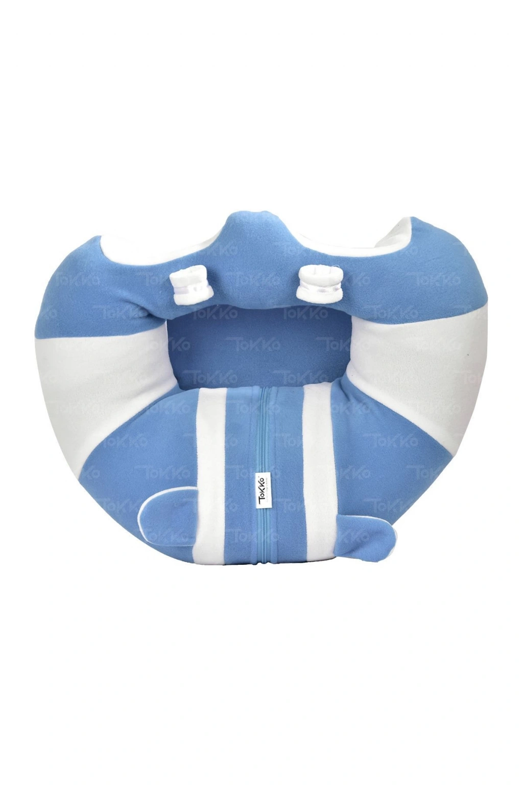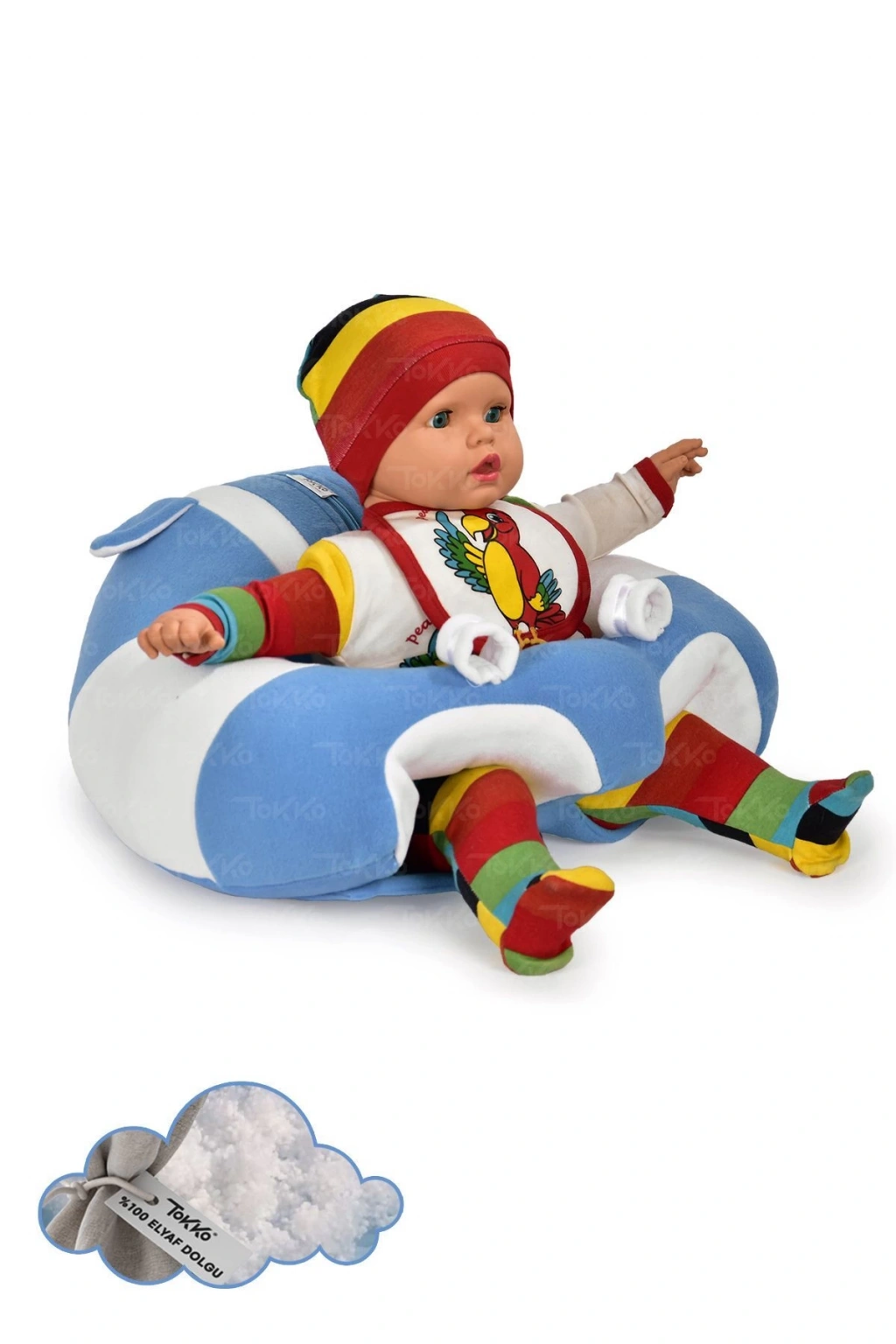 Elyaf Dolgu Bebek Oturma Destek Minderi - Devrilmez Bebek Koltuğu - Büyük Bebek Oturağı Mavi Beyaz