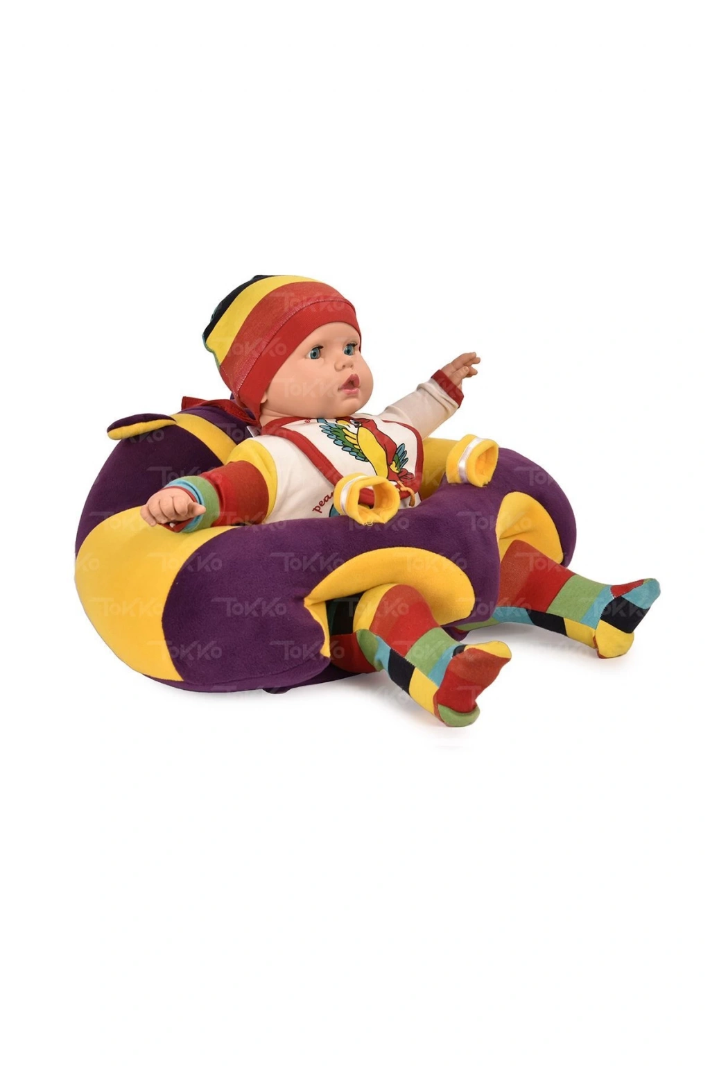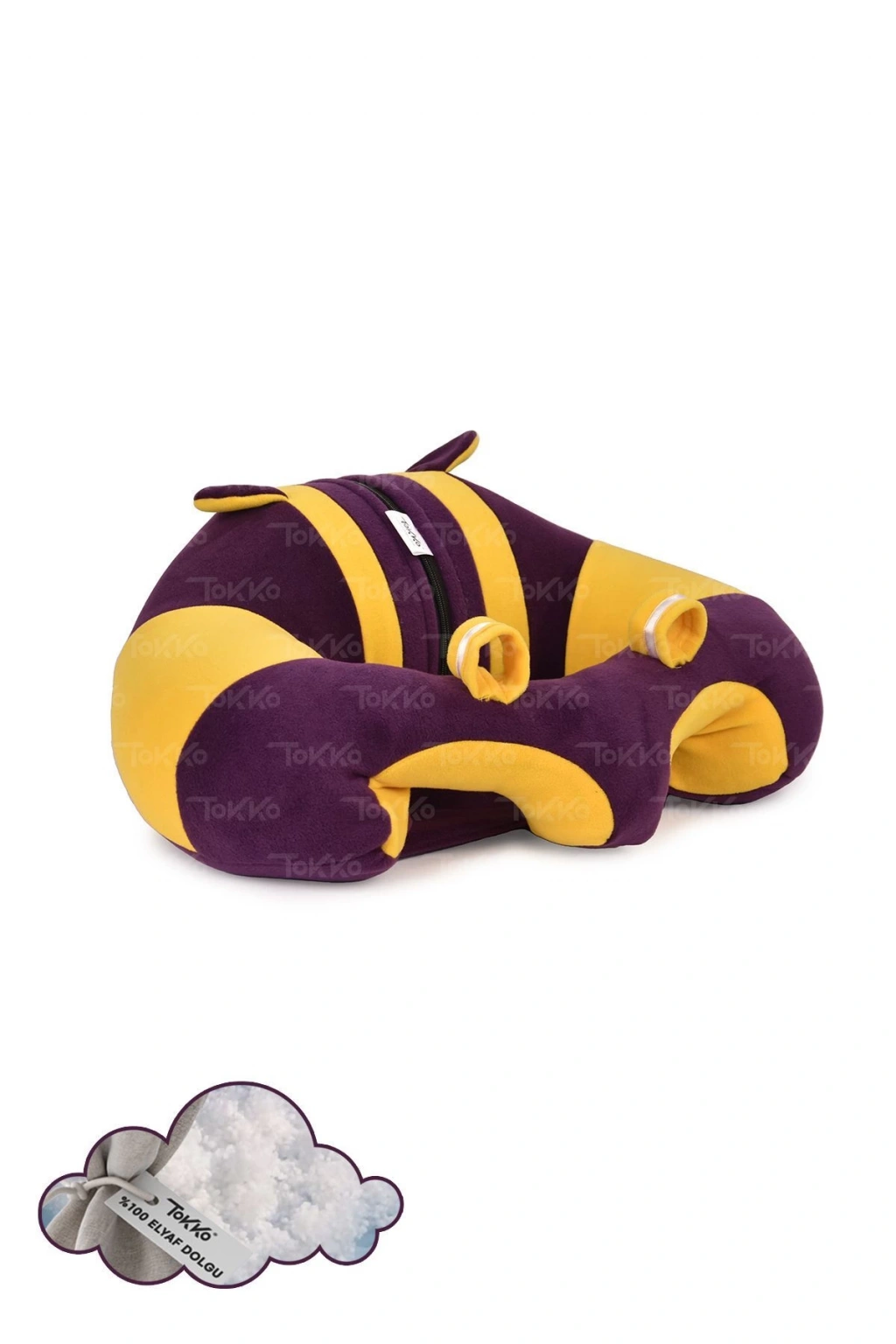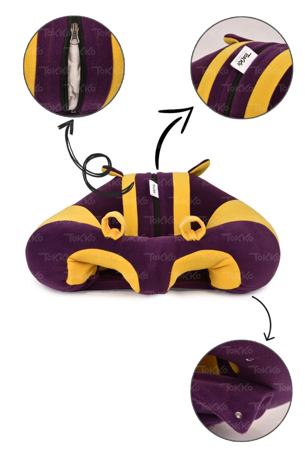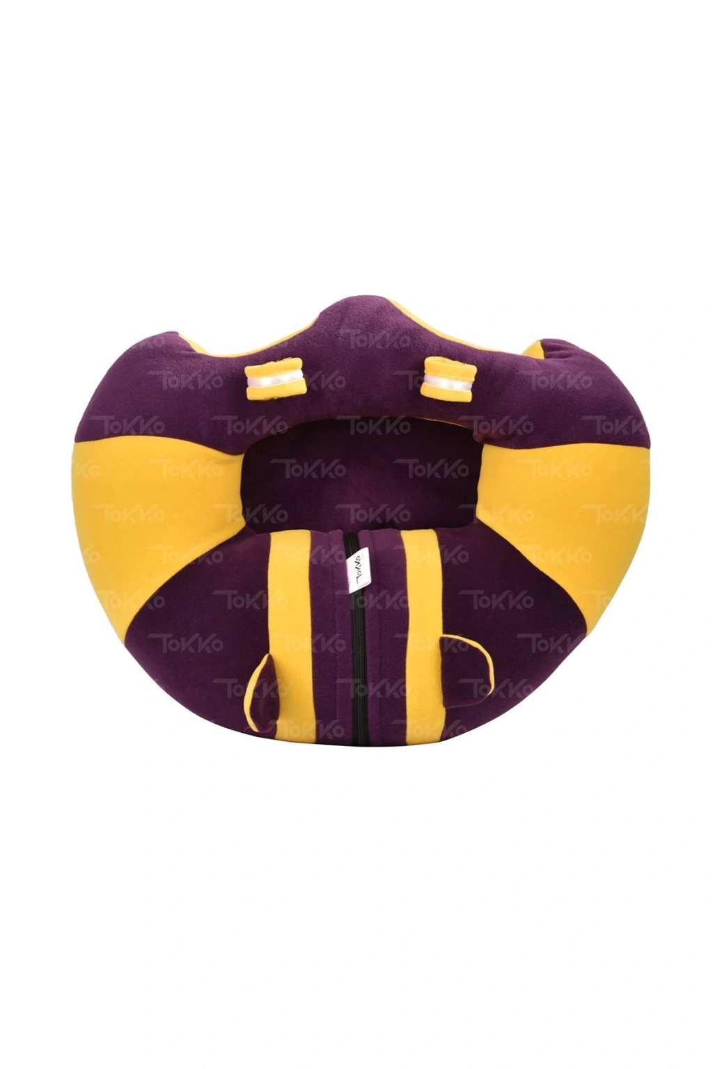 Elyaf Dolgu Bebek Oturma Destek Minderi - Devrilmez Bebek Koltuğu - Büyük Bebek Oturağı Mor Sarı