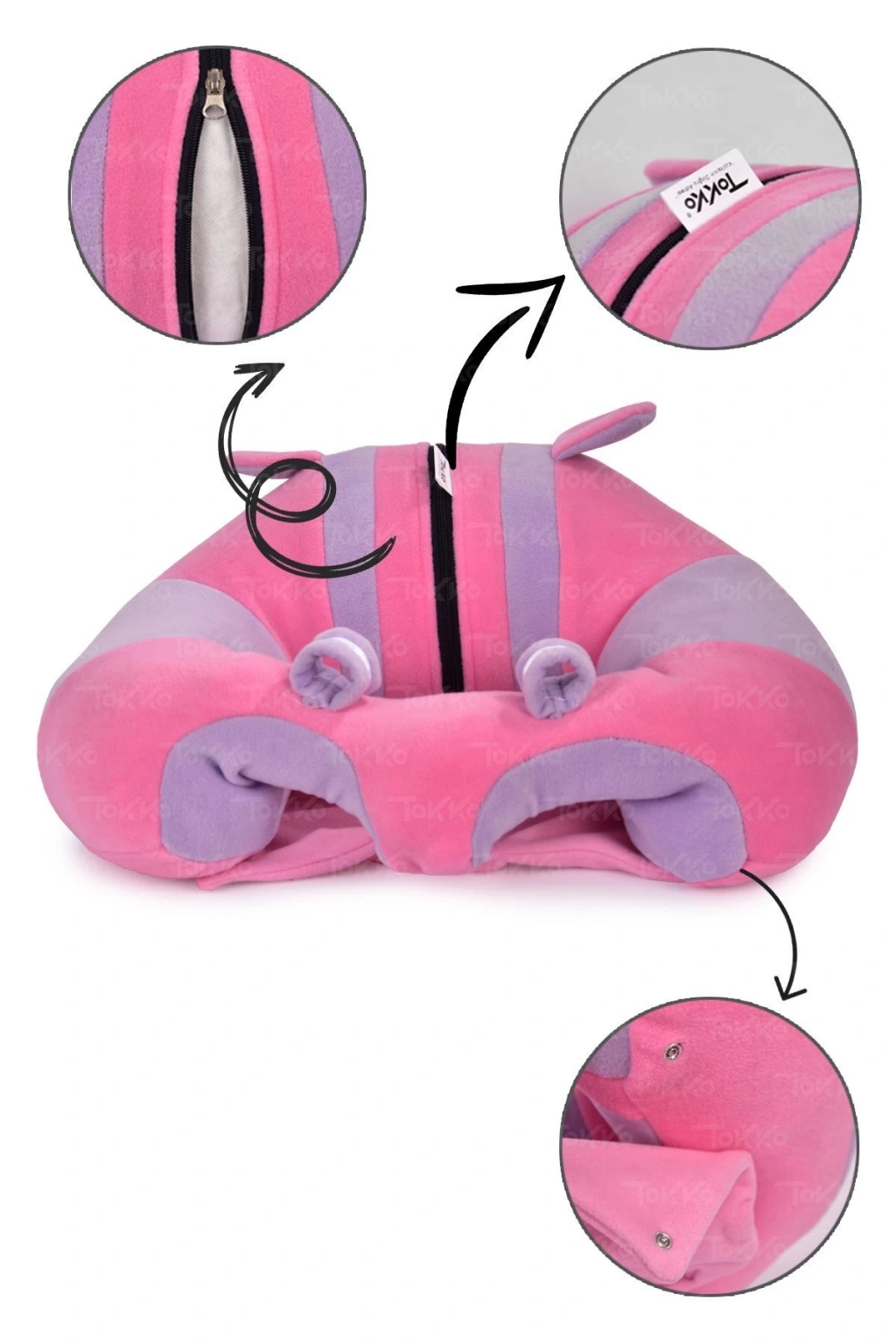 Elyaf Dolgu Bebek Oturma Destek Minderi - Devrilmez Bebek Koltuğu - Büyük Bebek Oturağı Mor Pembe