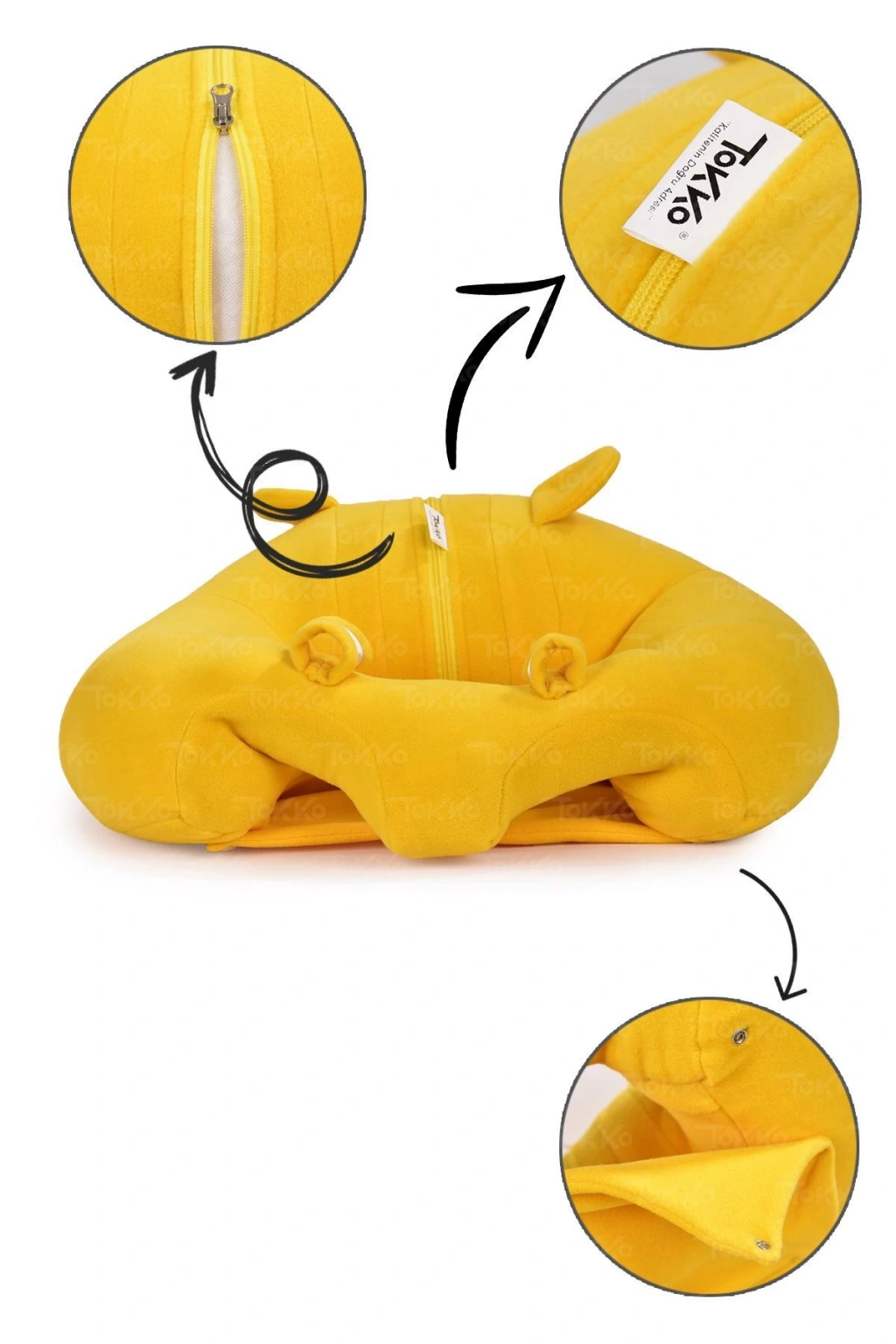 Elyaf Dolgu Bebek Oturma Destek Minderi - Devrilmez Bebek Koltuğu - Büyük Bebek Oturağı Sarı Siyah