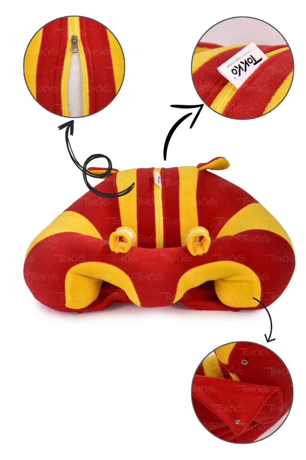 Elyaf Dolgu Bebek Oturma Destek Minderi - Devrilmez Bebek Koltuğu - Büyük Bebek Oturağı Sarı Kırmızı