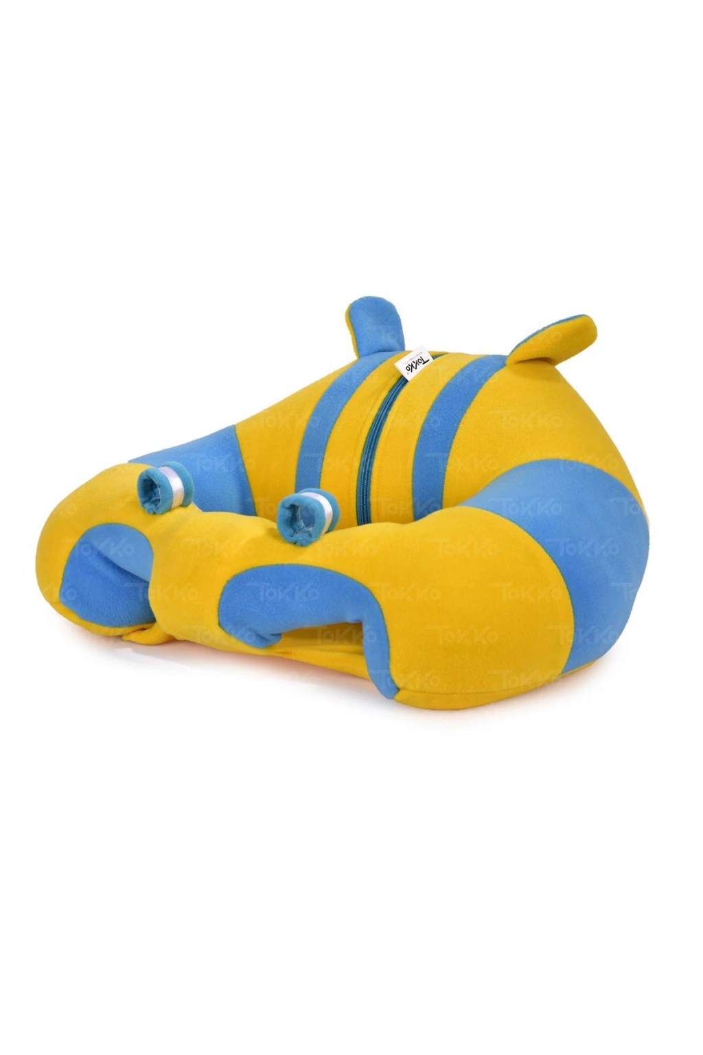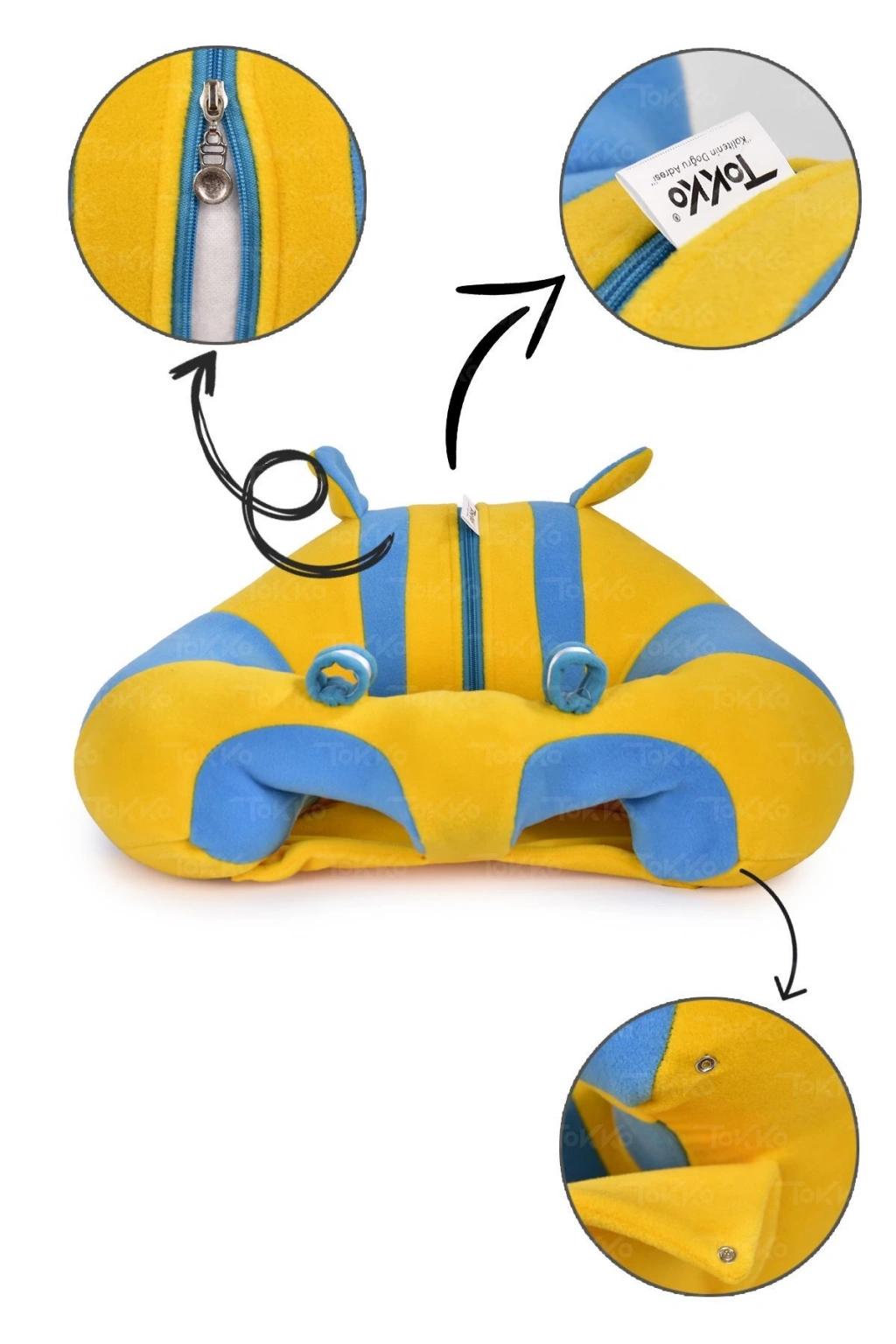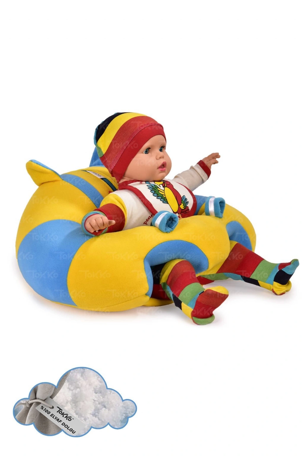 Elyaf Dolgu Bebek Oturma Destek Minderi - Devrilmez Bebek Koltuğu - Büyük Bebek Oturağı Sarı Mavi