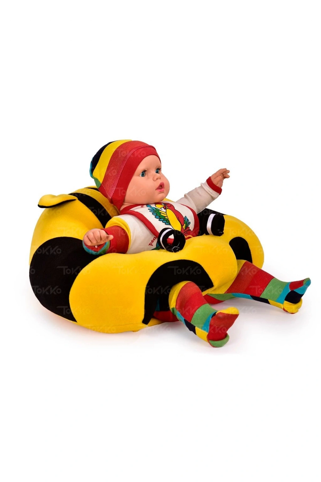 Elyaf Dolgu Bebek Oturma Destek Minderi - Devrilmez Bebek Koltuğu - Büyük Bebek Oturağı Sarı Siyah