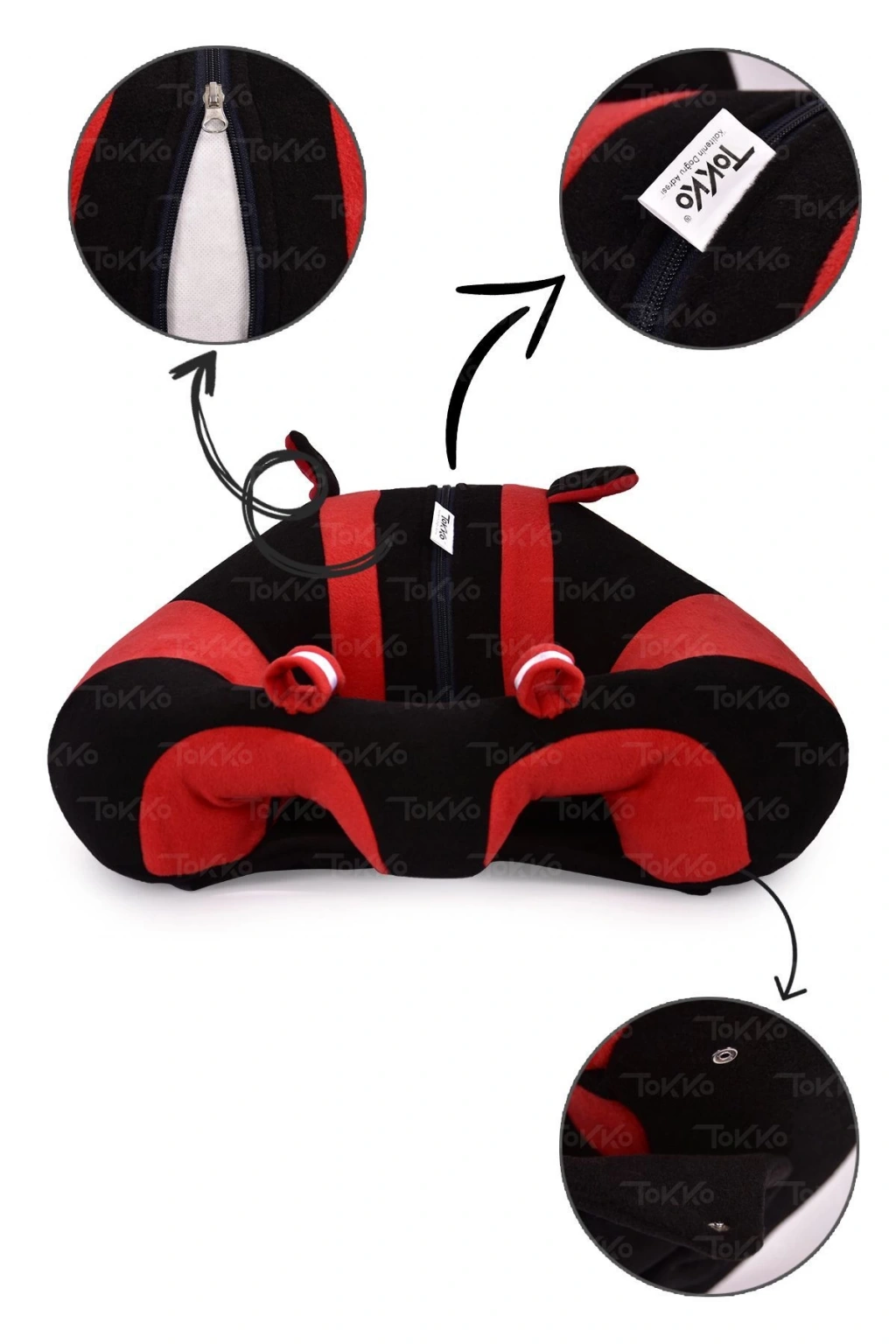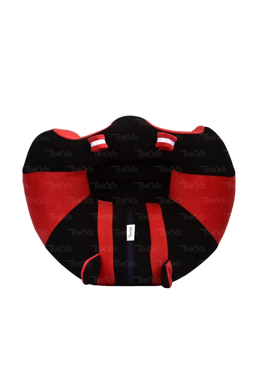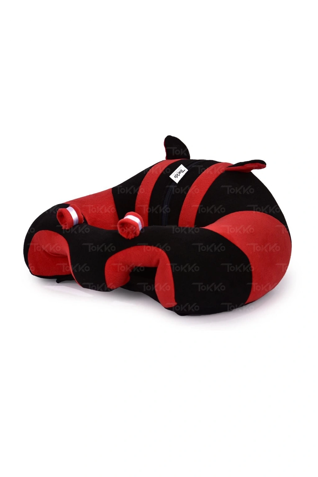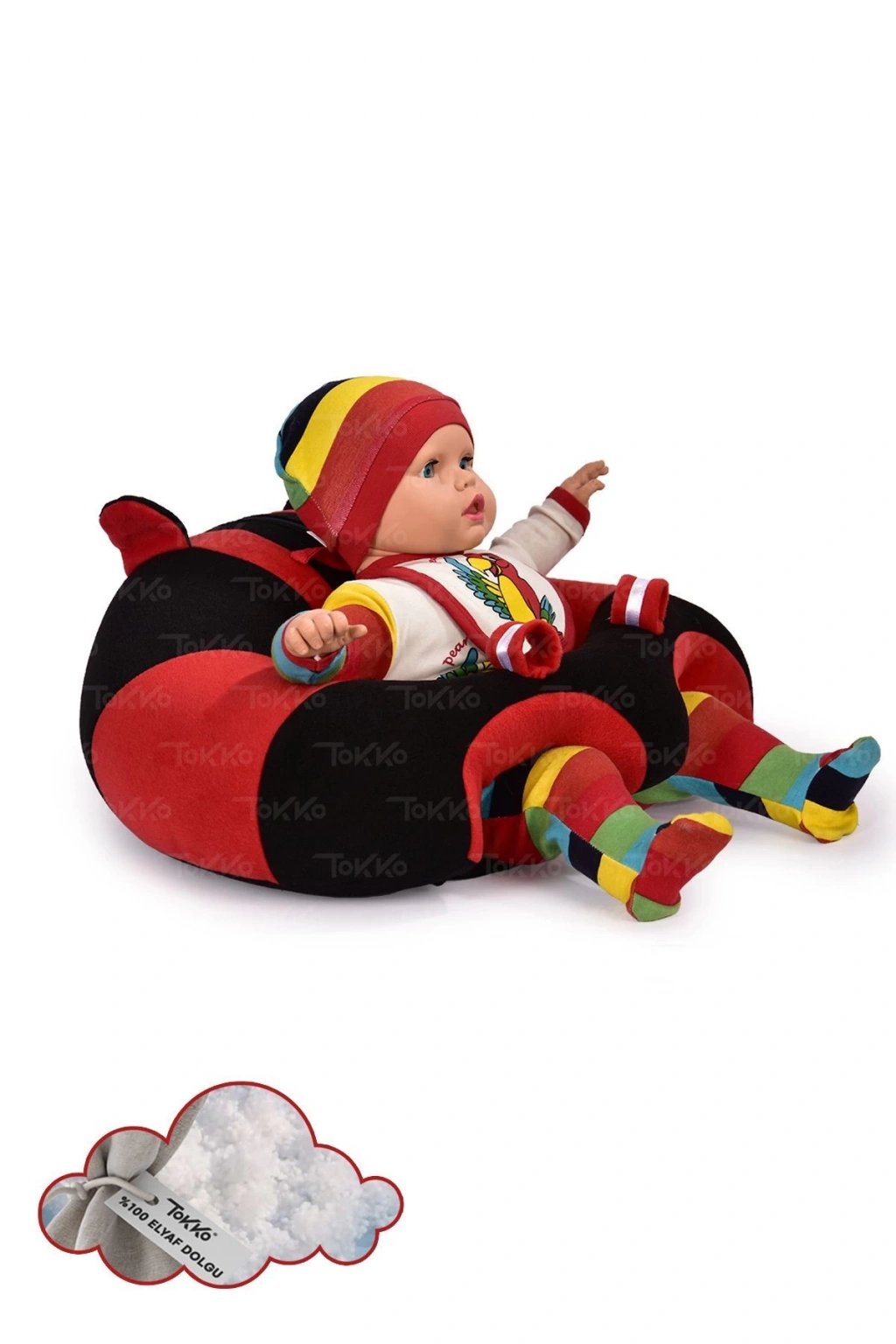 Elyaf Dolgu Bebek Oturma Destek Minderi- Devrilmez Bebek Koltuğu - Büyük Bebek Oturağı Siyah Kırmızı