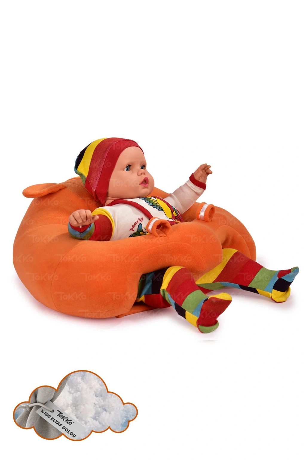 Elyaf Dolgu Bebek Oturma Destek Minderi - Devrilmez Bebek Koltuğu - Büyük Bebek Oturağı Turuncu