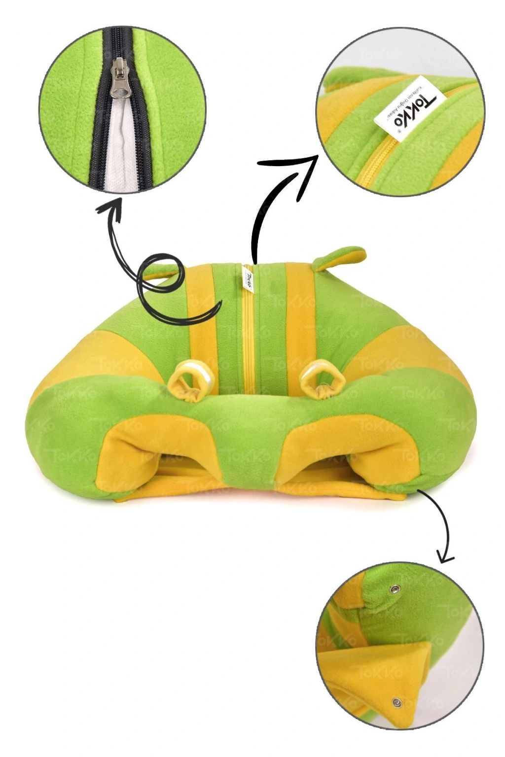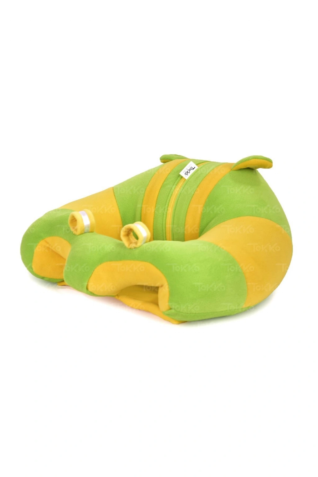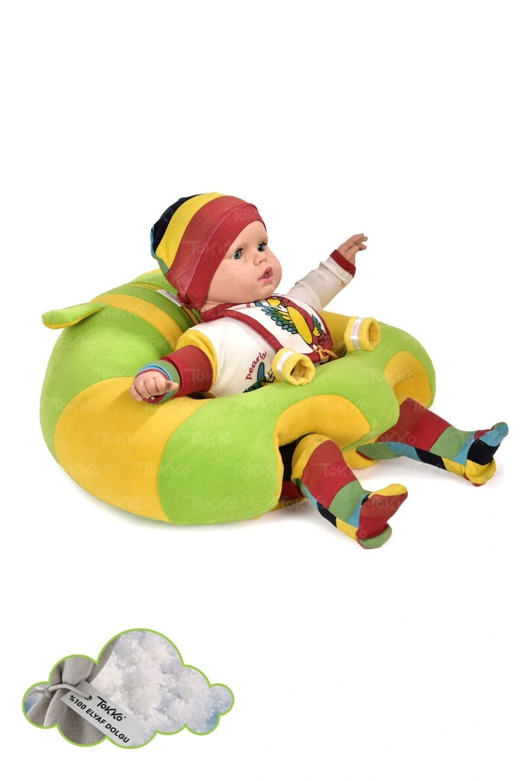 Elyaf Dolgu Bebek Oturma Destek Minderi - Devrilmez Bebek Koltuğu - Büyük Bebek Oturağı Yeşil Sarı