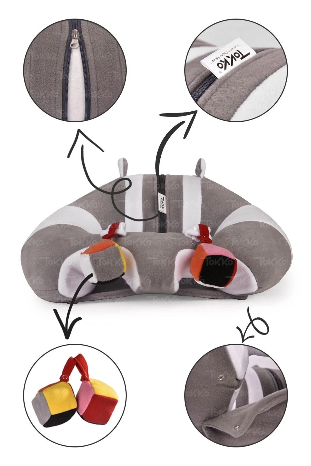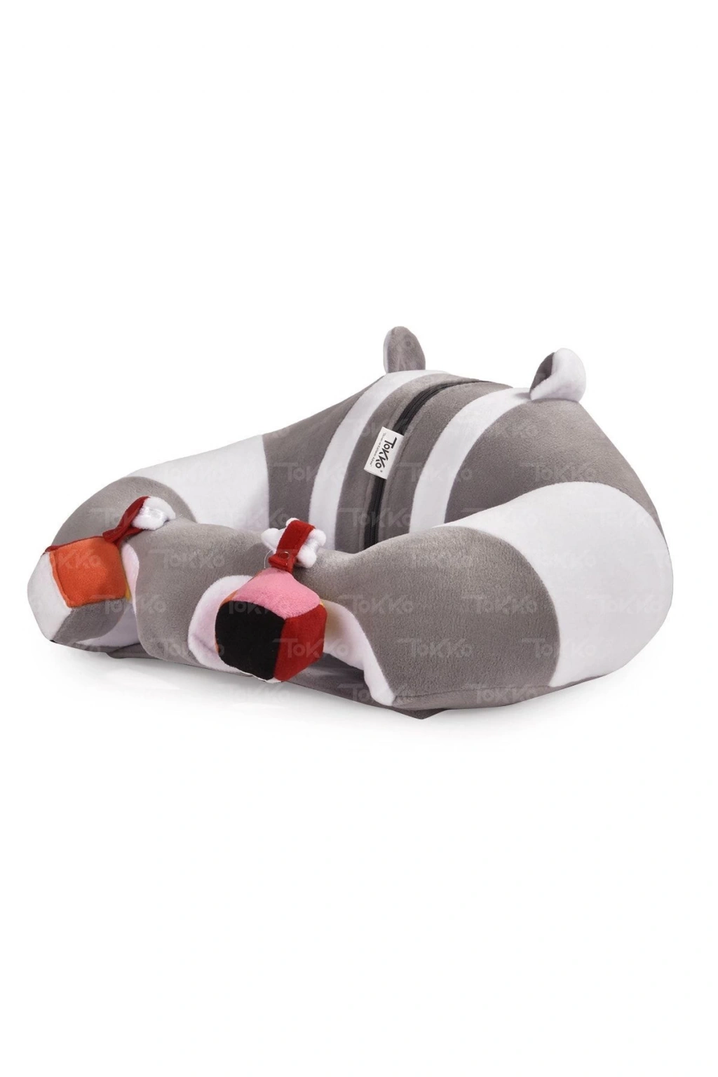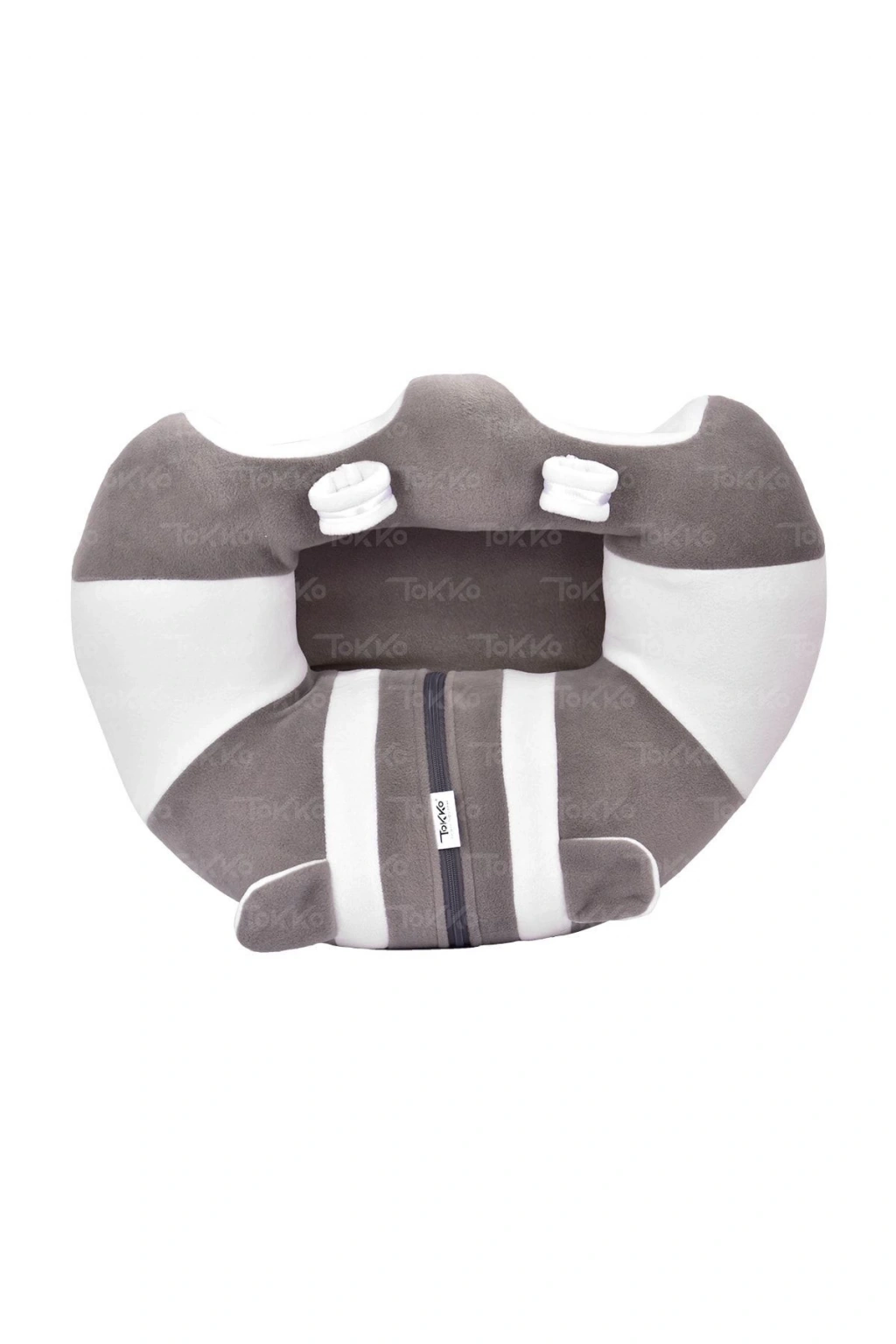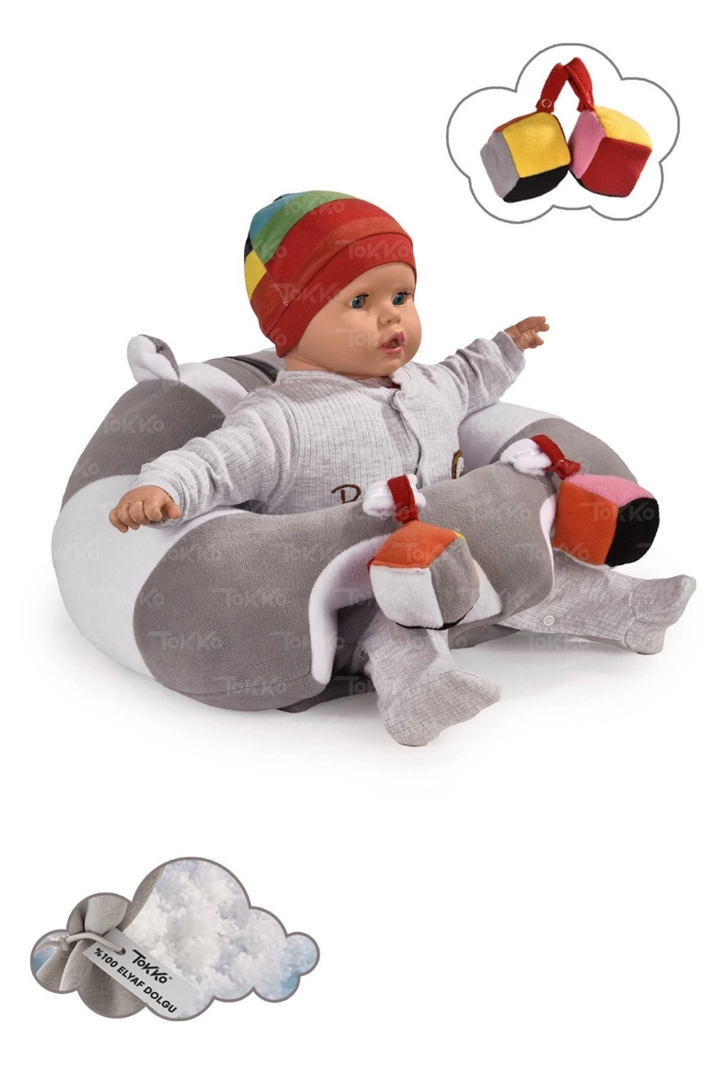 Oyuncaklı Bebek Oturma Destek Minderi - Devrilmez Bebek Koltuğu - Büyük Bebek Oturağı Gri Beyaz