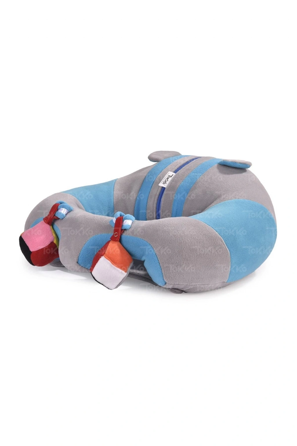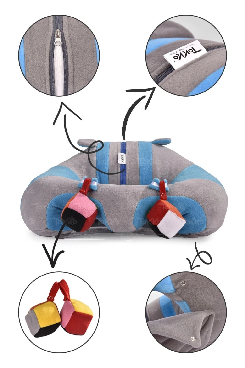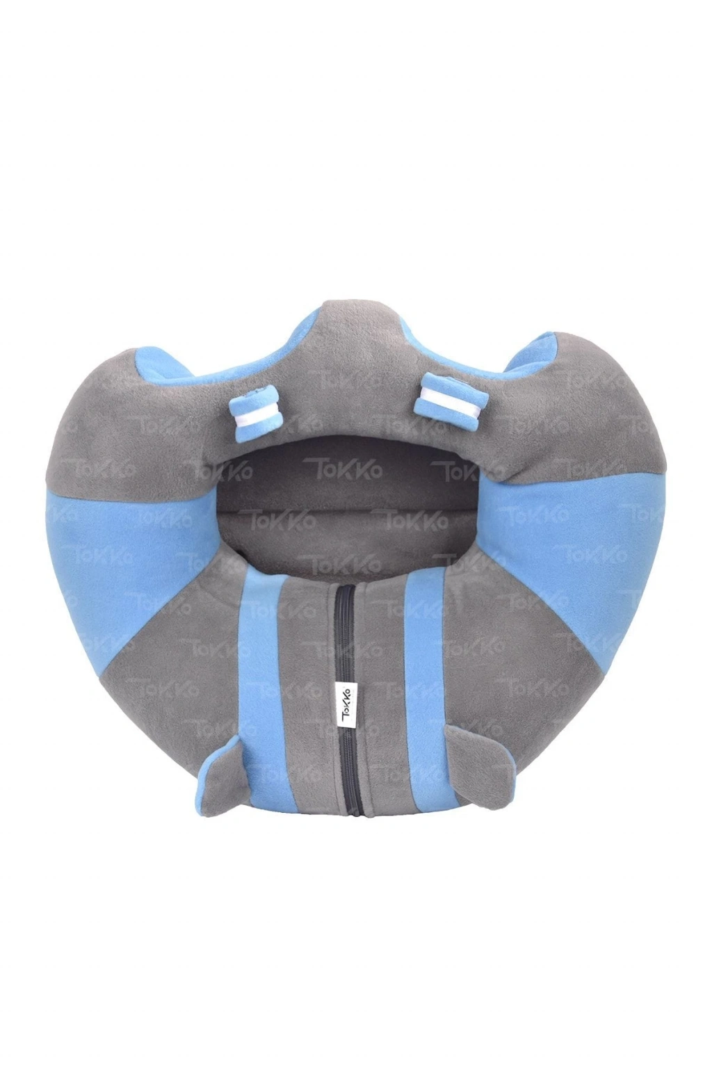 Oyuncaklı Bebek Oturma Destek Minderi - Devrilmez Bebek Koltuğu - Büyük Bebek Oturağı Gri Mavi