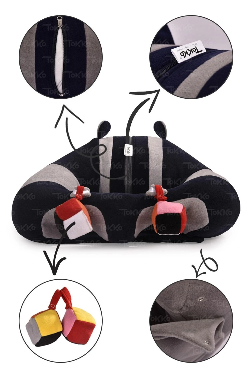 Oyuncaklı Bebek Oturma Destek Minderi - Devrilmez Bebek Koltuğu - Büyük Bebek Oturağı Gri Siyah
