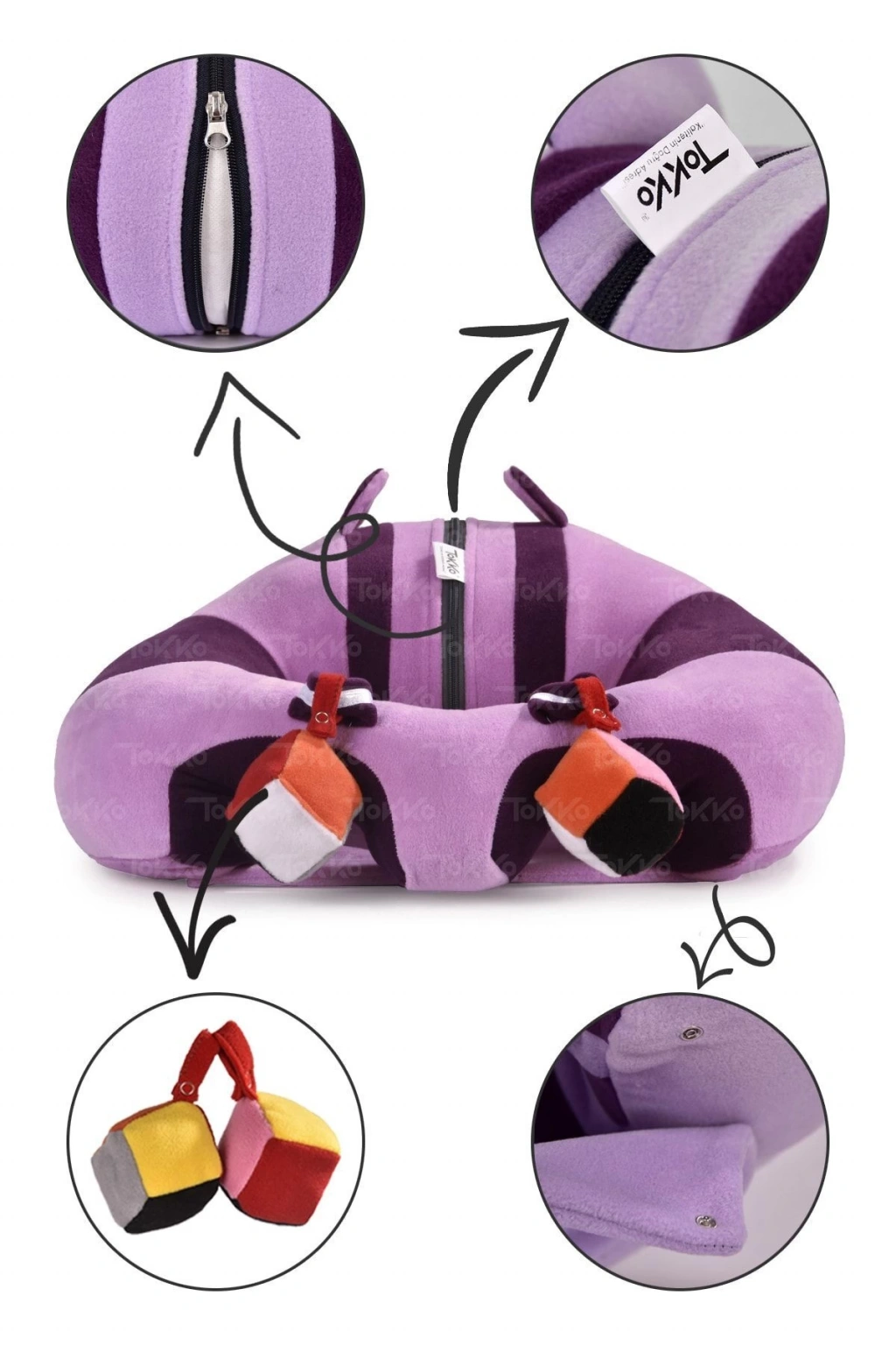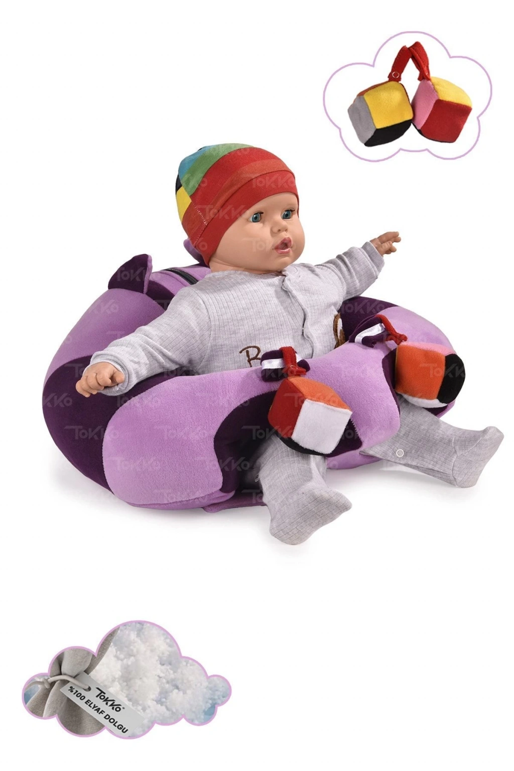 Oyuncaklı Bebek Oturma Destek Minderi - Devrilmez Bebek Koltuğu - Büyük Bebek Oturağı Mor Pembe