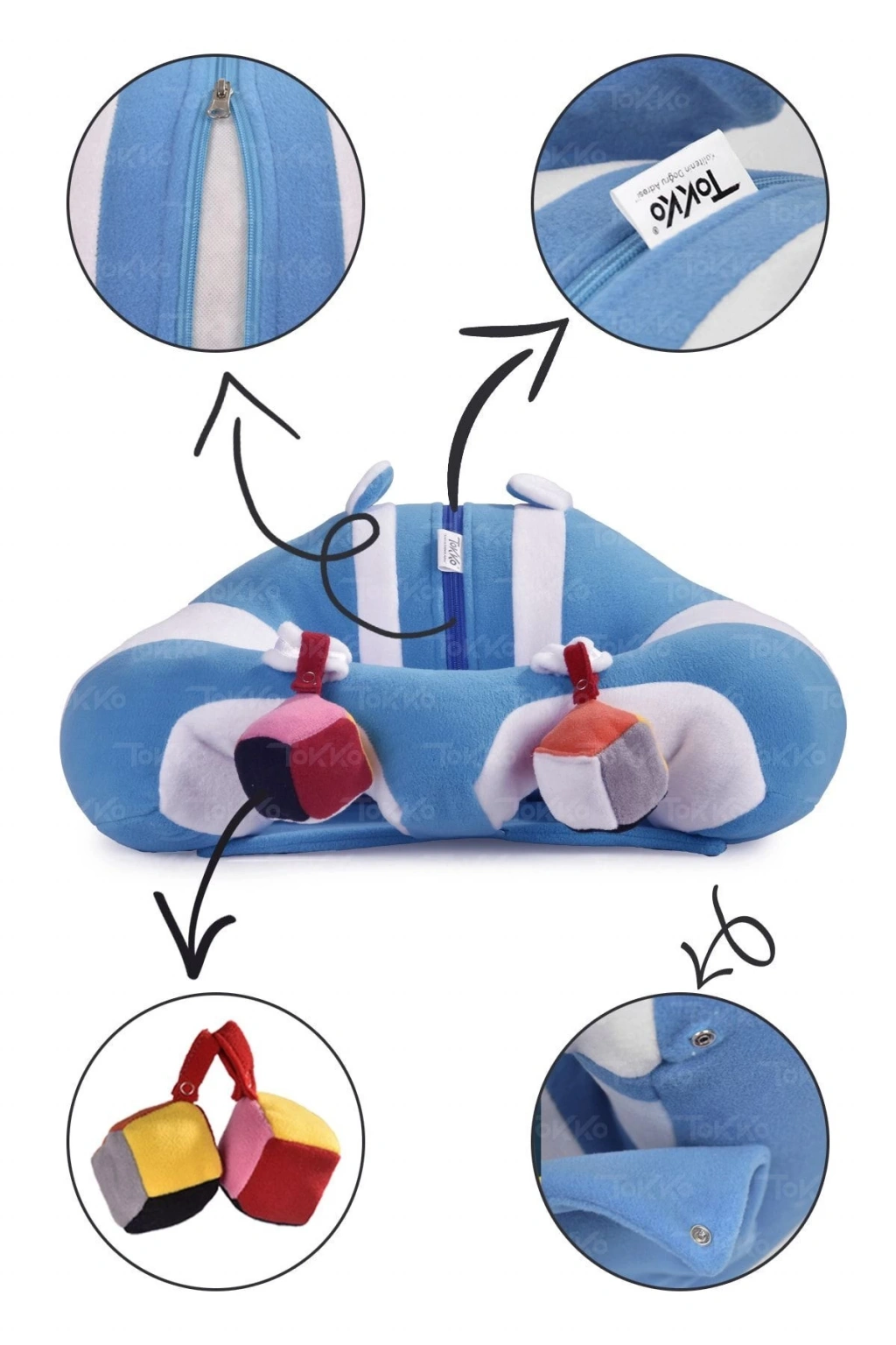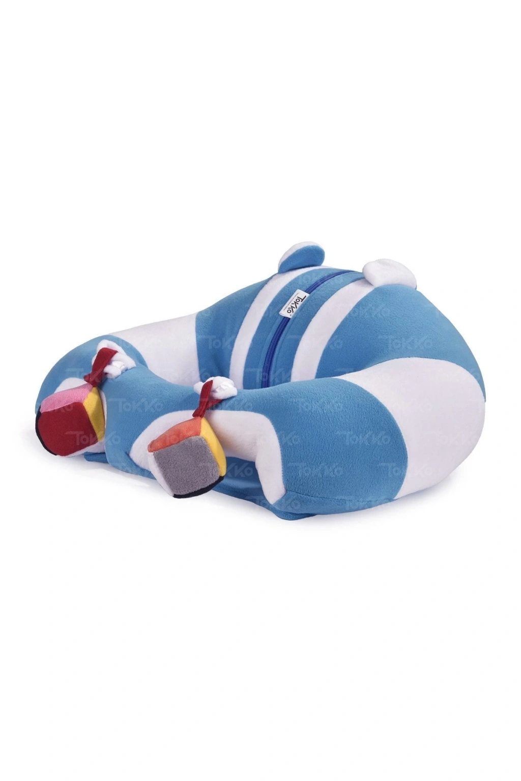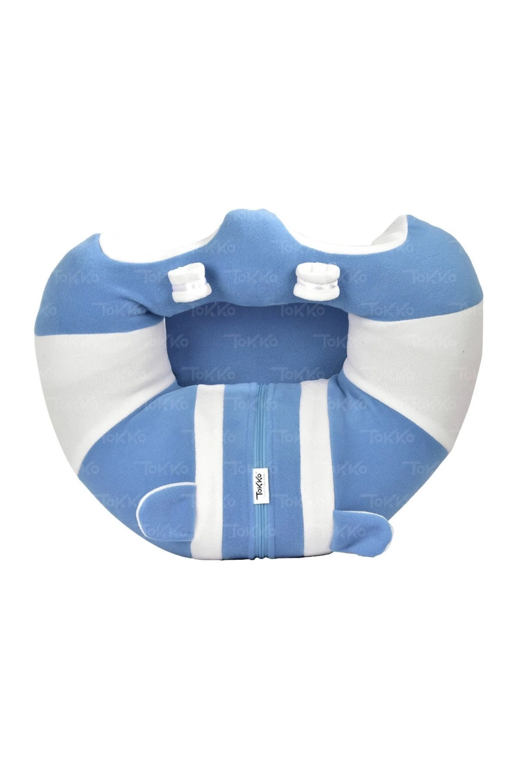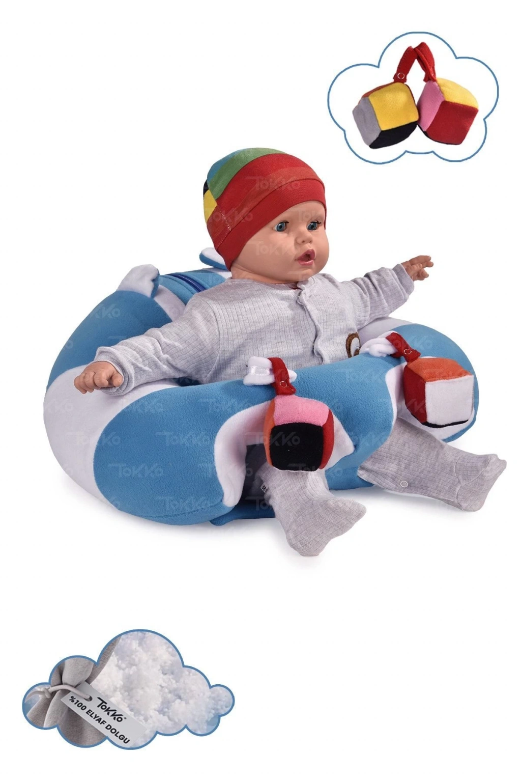 Oyuncaklı Bebek Oturma Destek Minderi - Devrilmez Bebek Koltuğu - Büyük Bebek Oturağı Mavi Beyaz