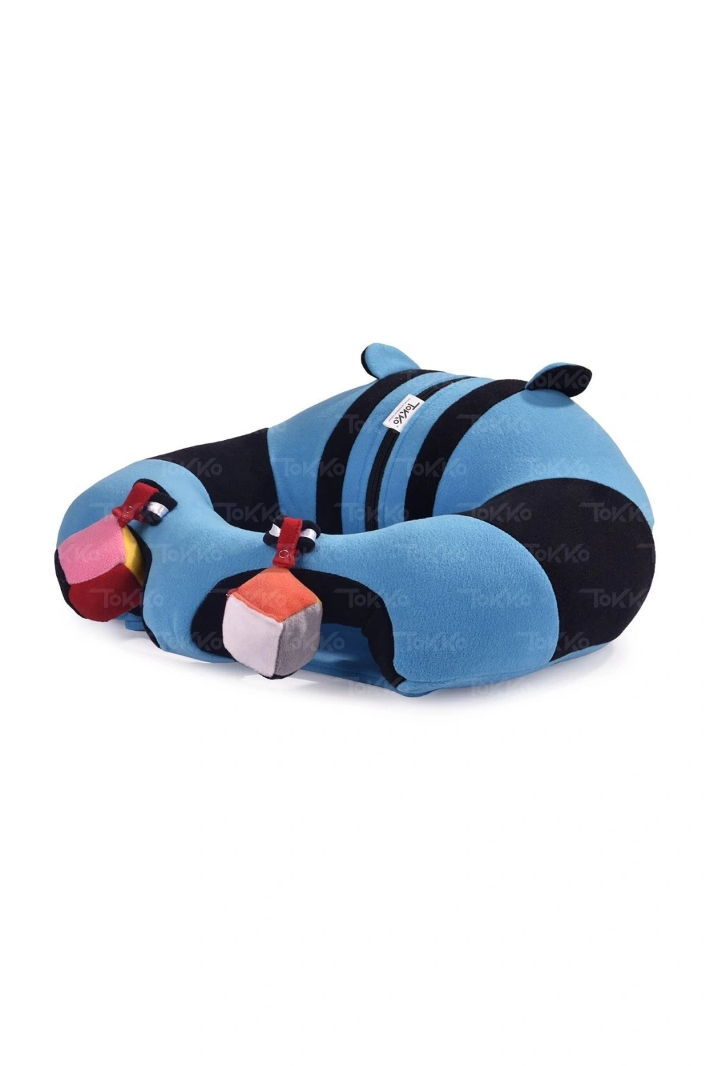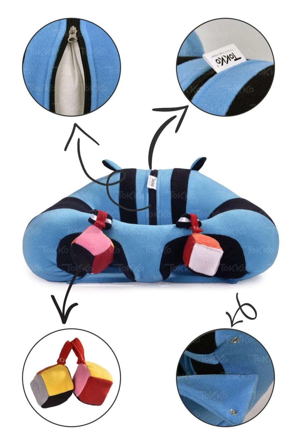 Oyuncaklı Bebek Oturma Destek Minderi - Devrilmez Bebek Koltuğu - Büyük Bebek Oturağı Mavi Siyah