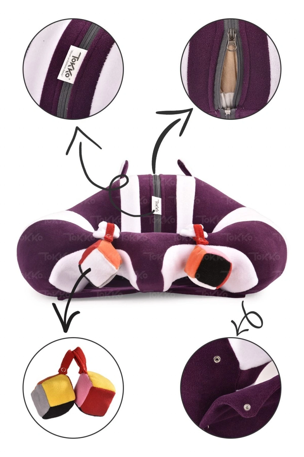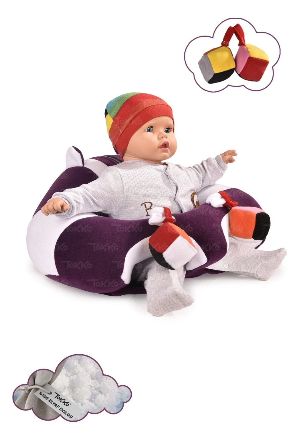 Oyuncaklı Bebek Oturma Destek Minderi - Devrilmez Bebek Koltuğu - Büyük Bebek Oturağı Mor Pembe