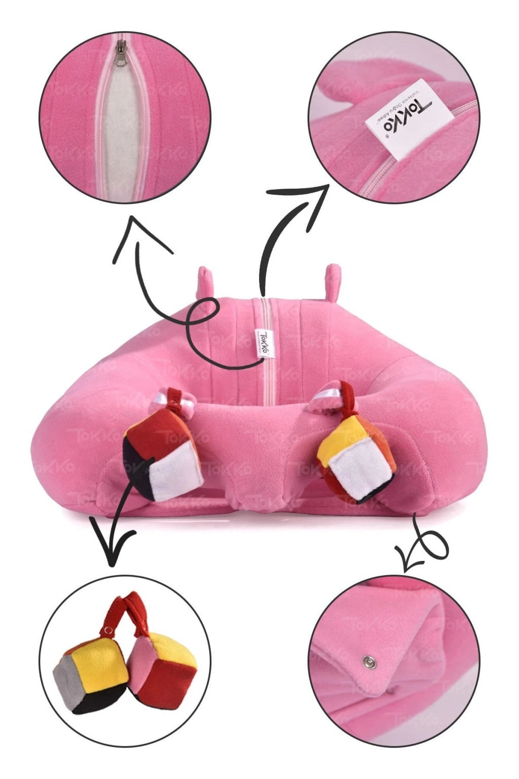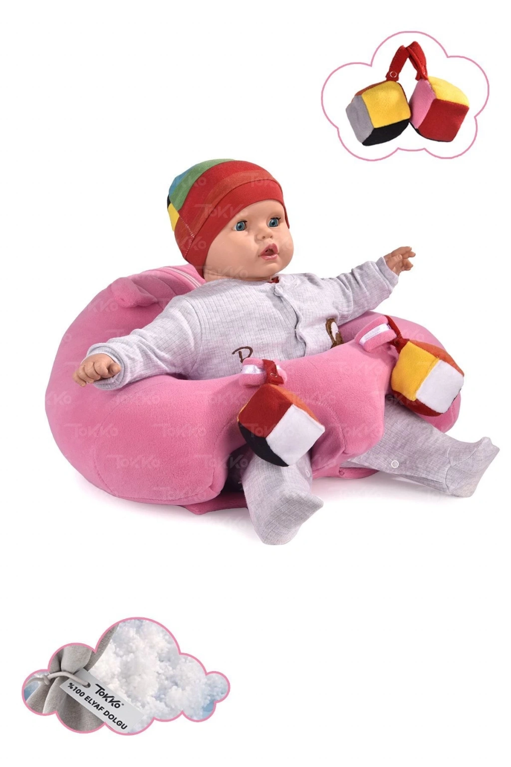 Oyuncaklı Bebek Oturma Destek Minderi - Devrilmez Bebek Koltuğu - Büyük Bebek Oturağı Pembe
