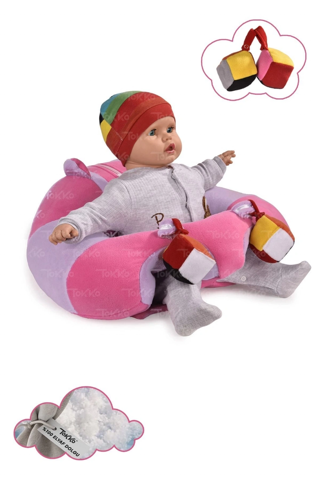 Oyuncaklı Bebek Oturma Destek Minderi - Devrilmez Bebek Koltuğu - Büyük Bebek Oturağı Pembe Lila