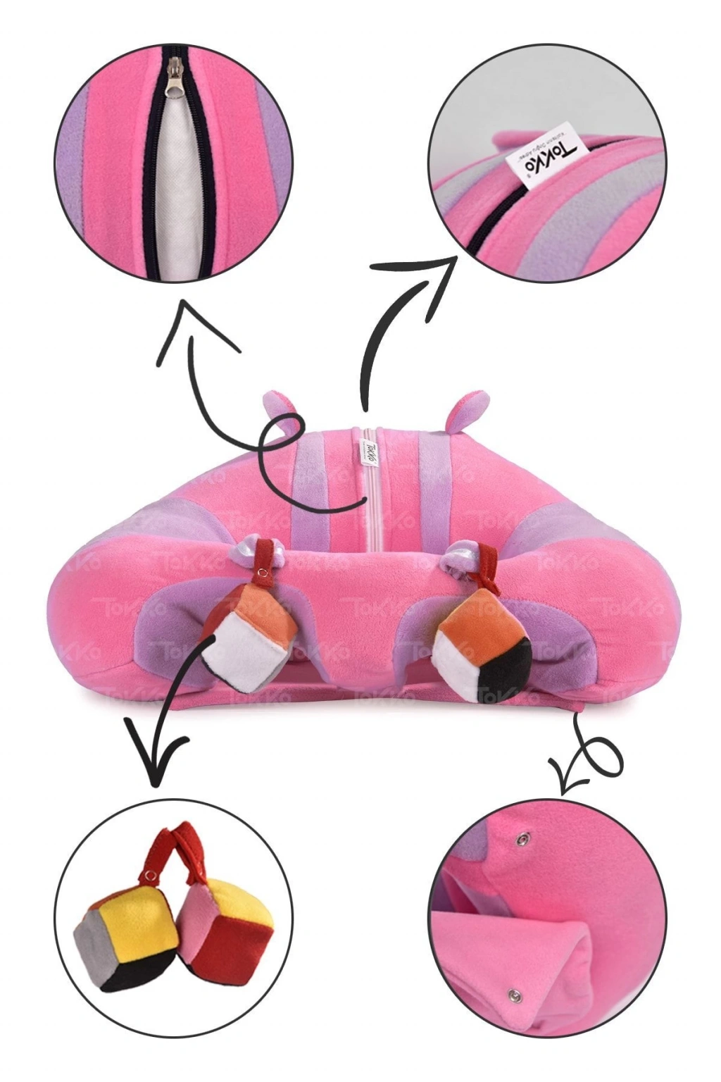 Oyuncaklı Bebek Oturma Destek Minderi - Devrilmez Bebek Koltuğu - Büyük Bebek Oturağı Fuşya Pembe