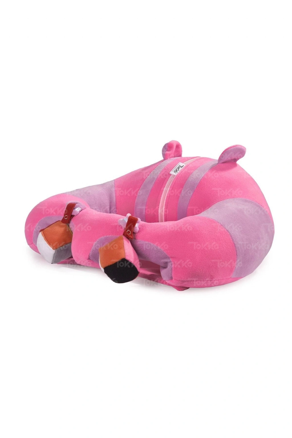 Oyuncaklı Bebek Oturma Destek Minderi - Devrilmez Bebek Koltuğu - Büyük Bebek Oturağı Gri Pembe