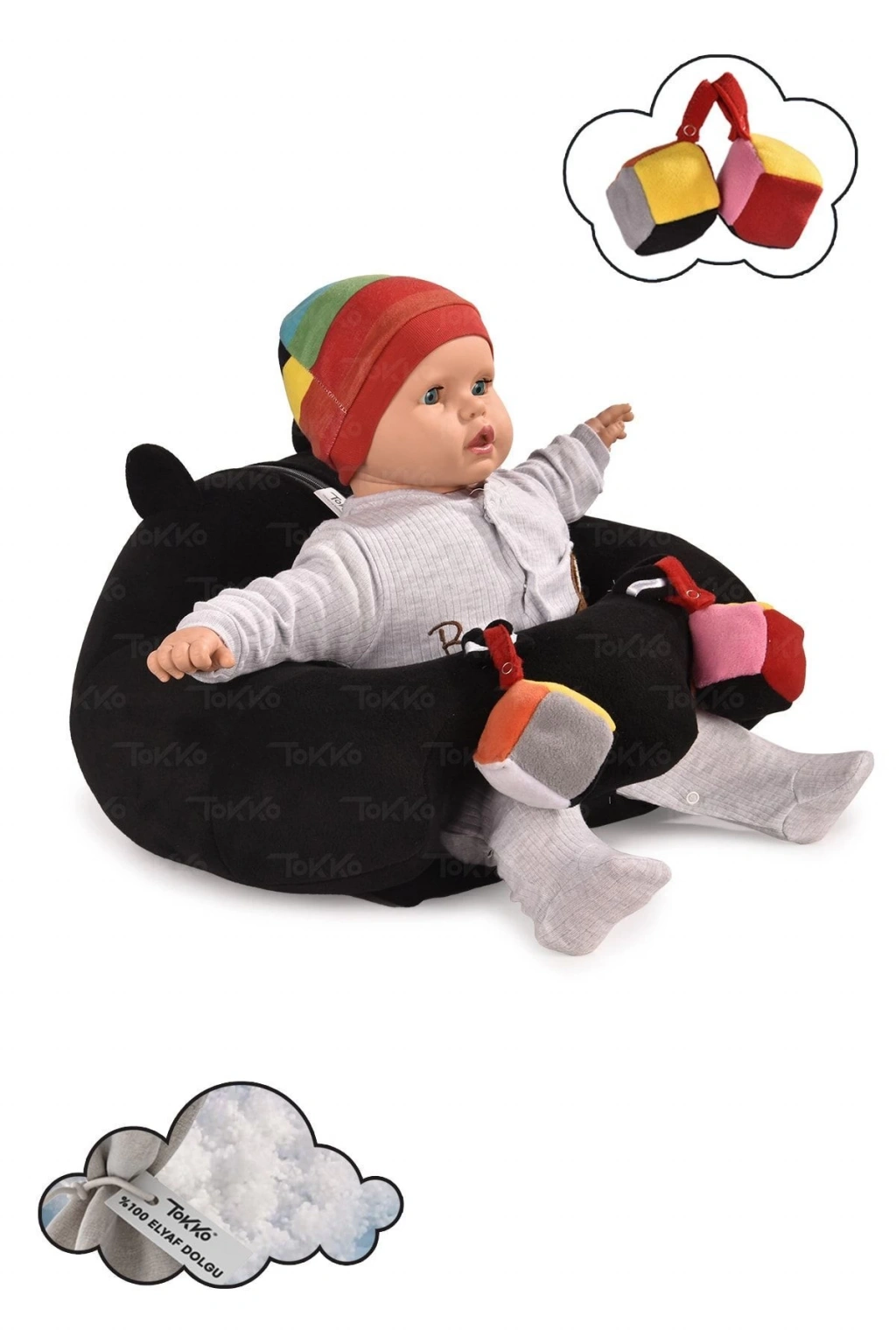 Oyuncaklı Bebek Oturma Destek Minderi - Devrilmez Bebek Koltuğu - Büyük Bebek Oturağı Siyah
