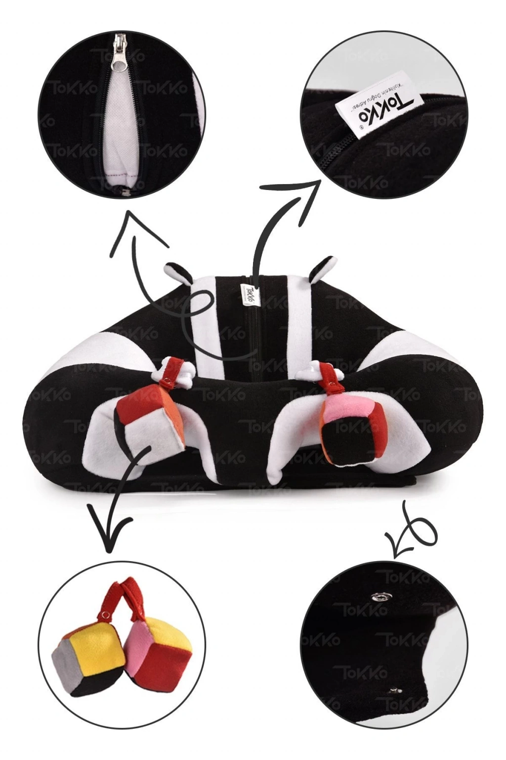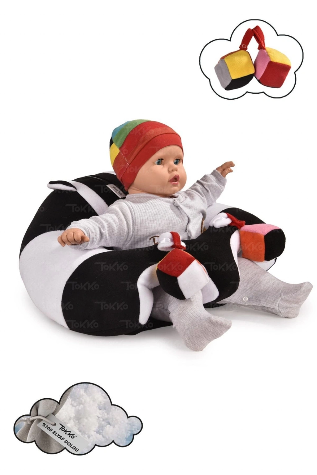 Oyuncaklı Bebek Oturma Destek Minderi - Devrilmez Bebek Koltuğu - Büyük Bebek Oturağı Siyah Beyaz