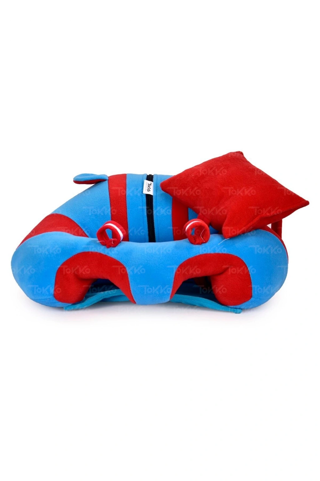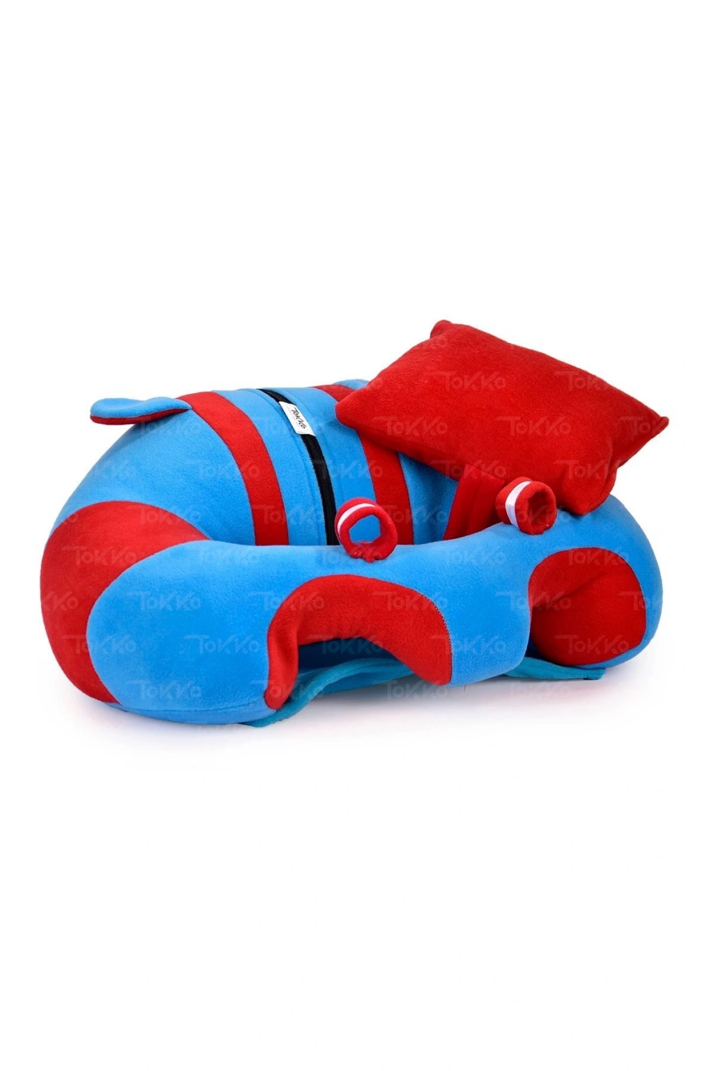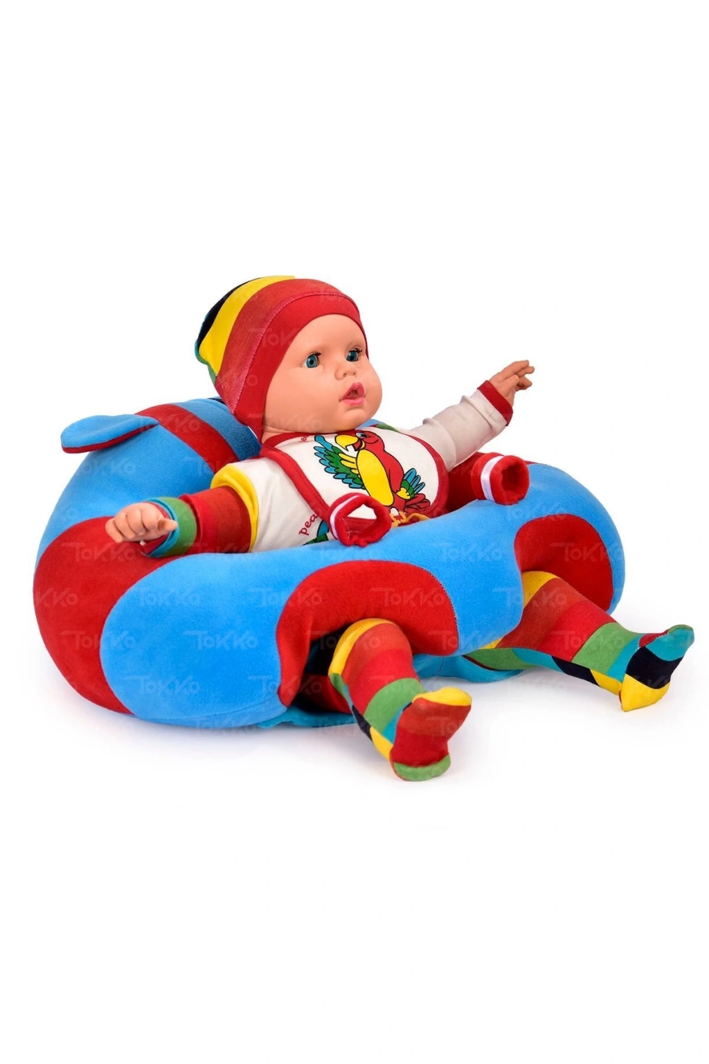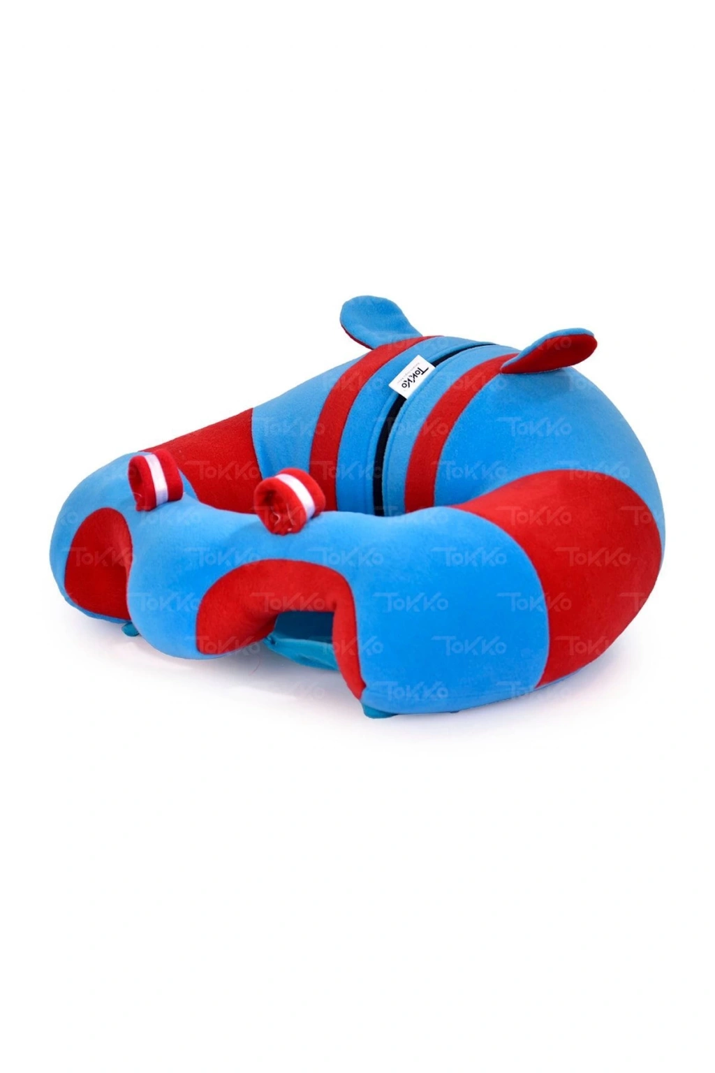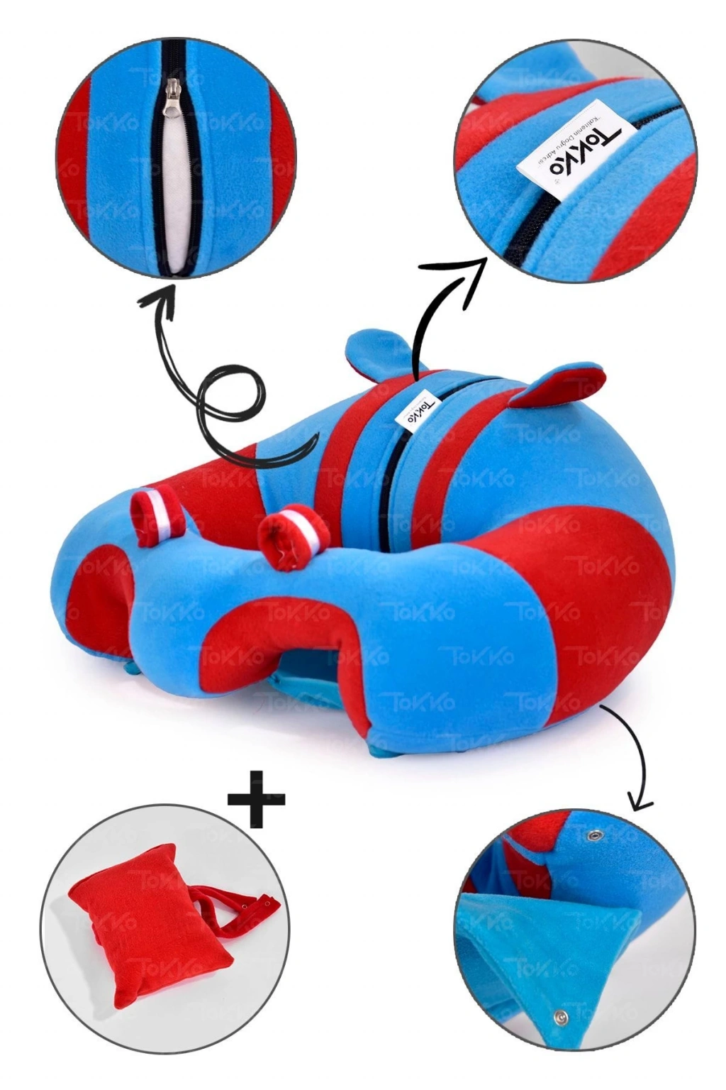 Yastık Hediyeli Bebek Oturma Destek Minderi - Büyük Bebek Koltuğu Bordo Mavi
