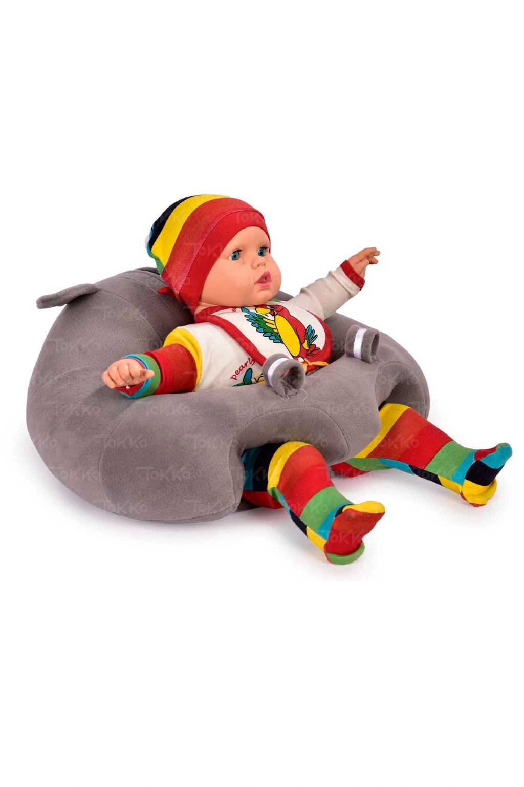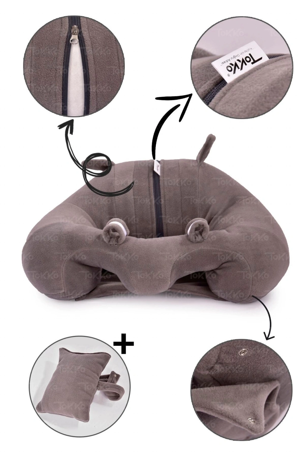 Yastık Hediyeli Bebek Oturma Destek Minderi - Büyük Bebek Koltuğu Gri