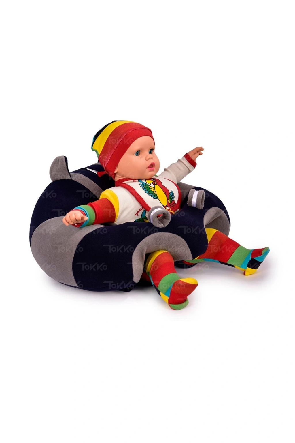 Yastık Hediyeli Bebek Oturma Destek Minderi - Büyük Bebek Koltuğu Lacivet Gri