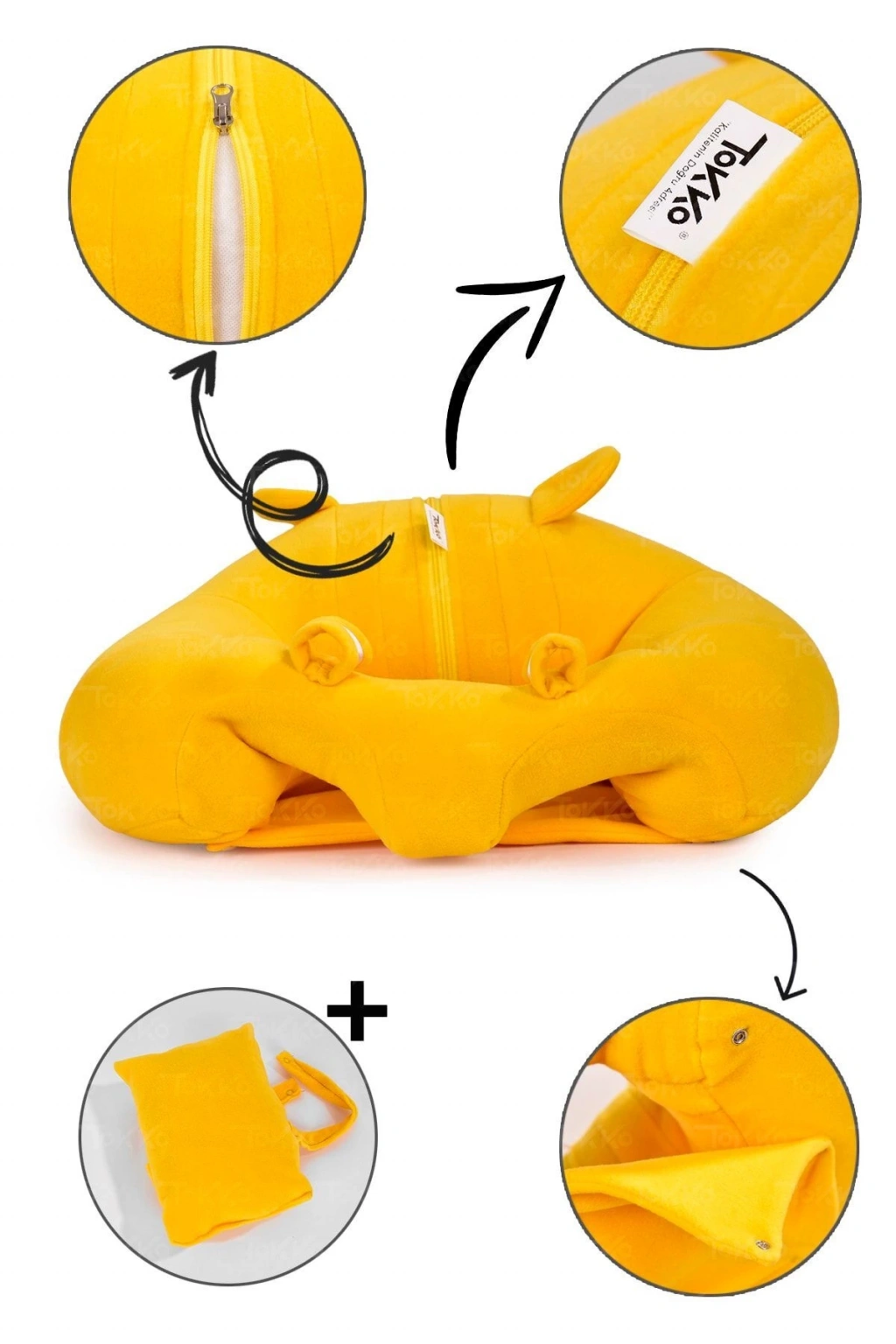 Yastık Hediyeli Bebek Oturma Destek Minderi - Büyük Bebek Koltuğu Sarı Siyah