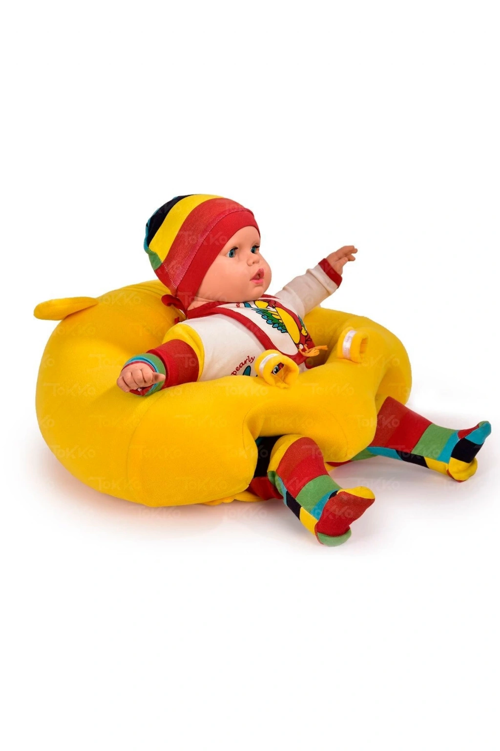 Yastık Hediyeli Oturma Destek Minderi - Büyük Bebek Koltuğu Sarı Kırmızı