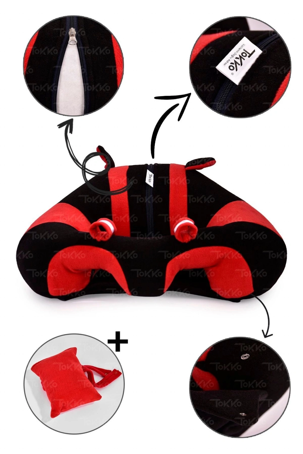 Yastık Hediyeli Oturma Destek Minderi - Büyük Bebek Koltuğu Siyah Kırmızı