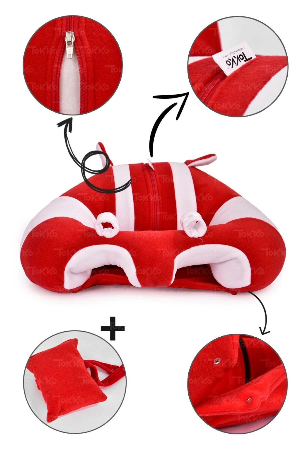 Yastıklı Bebek Oturma Destek Minderi - Devrilmez Bebek Koltuğu - Büyük Bebek Oturağı Kırmızı Beyaz